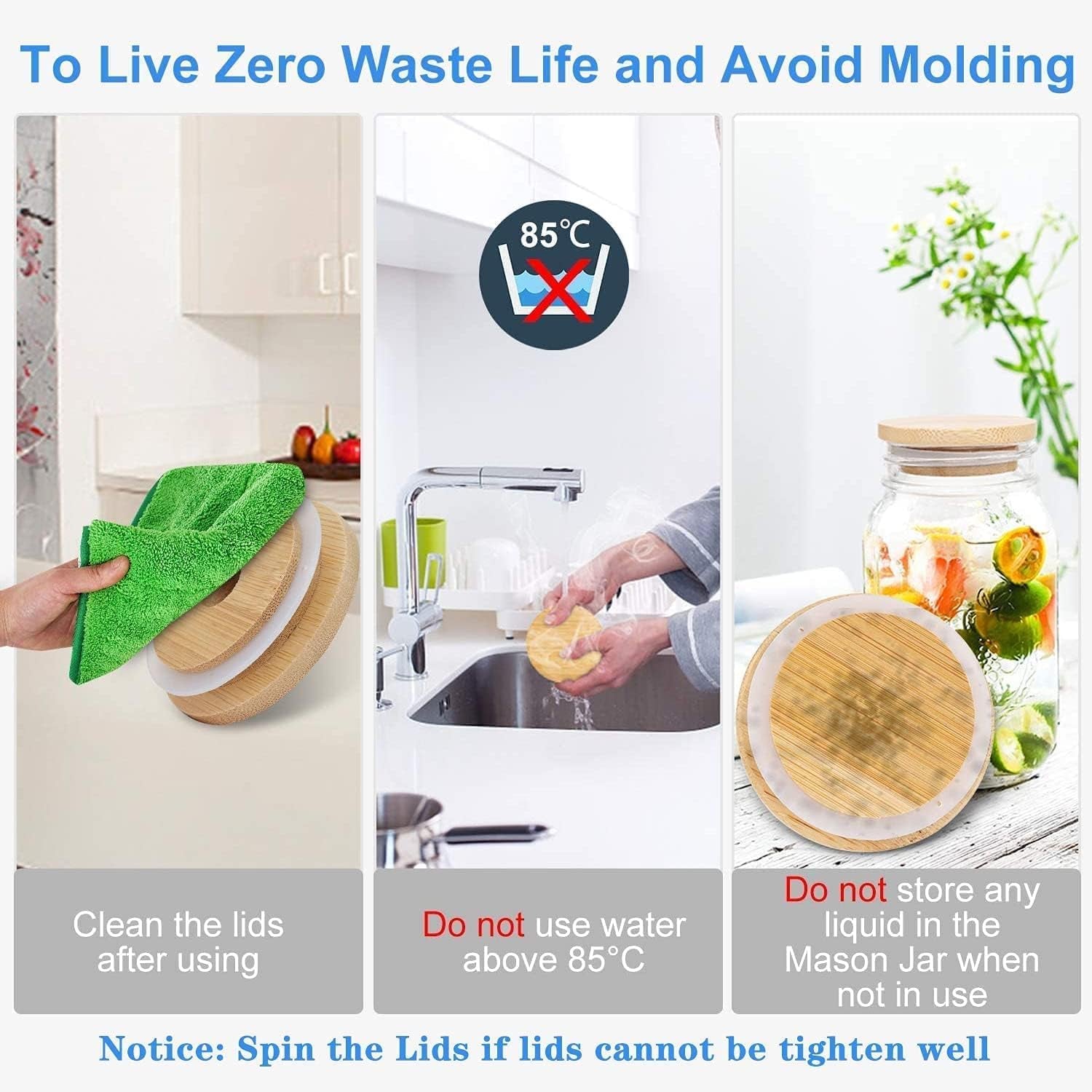 Flexible Fit – Each bamboo lid comes with a detachable silicone ring for a tight, leak-proof seal across different jar sizes