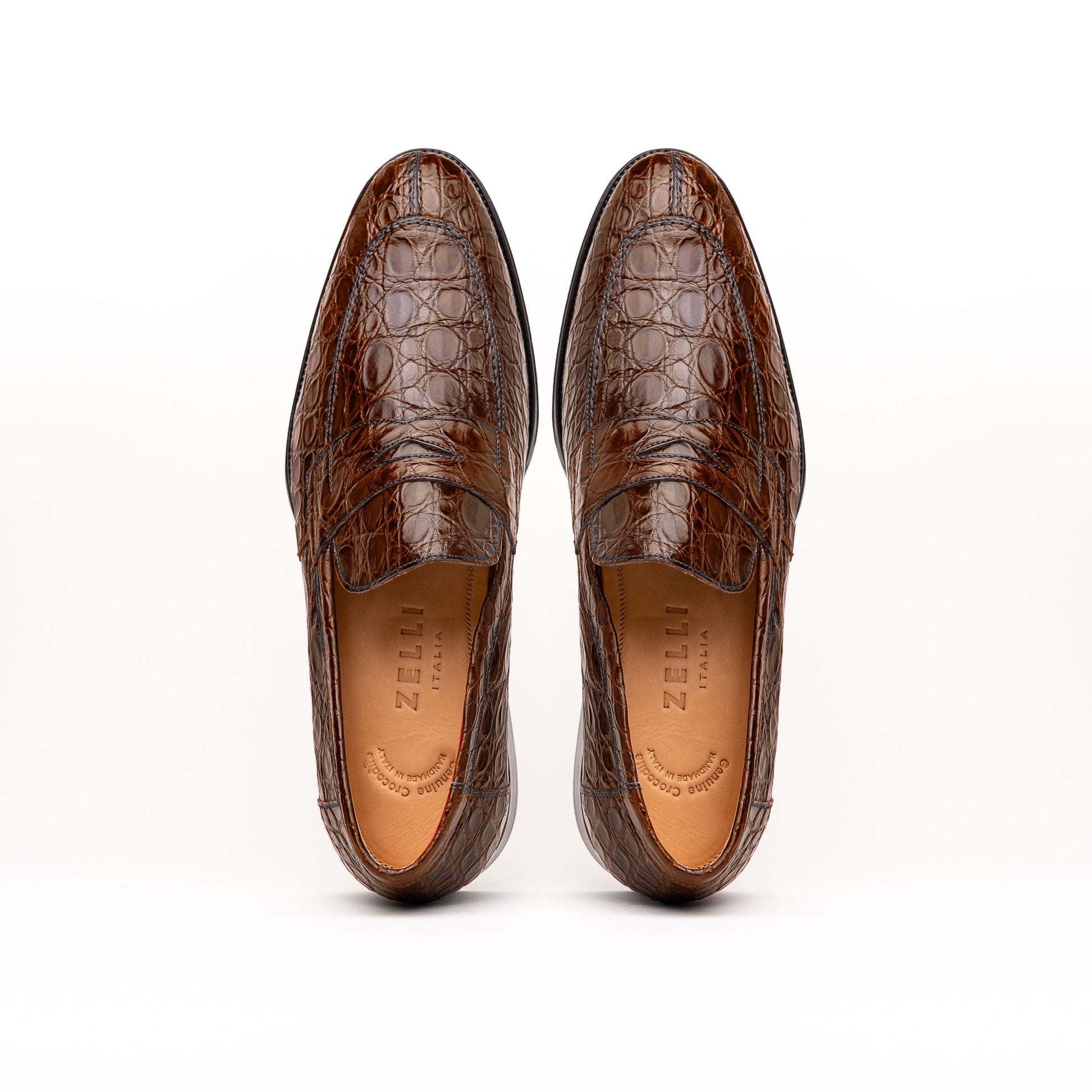 11-201-CGM ROMA Crocodile Penny Loafer, Cognac