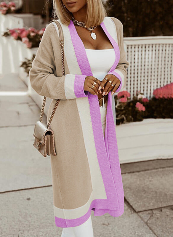 Autumn Winter Long Sweater Coat Women Color Matching Simple Elegant Loose Casual Long Cardigan Women Sweater