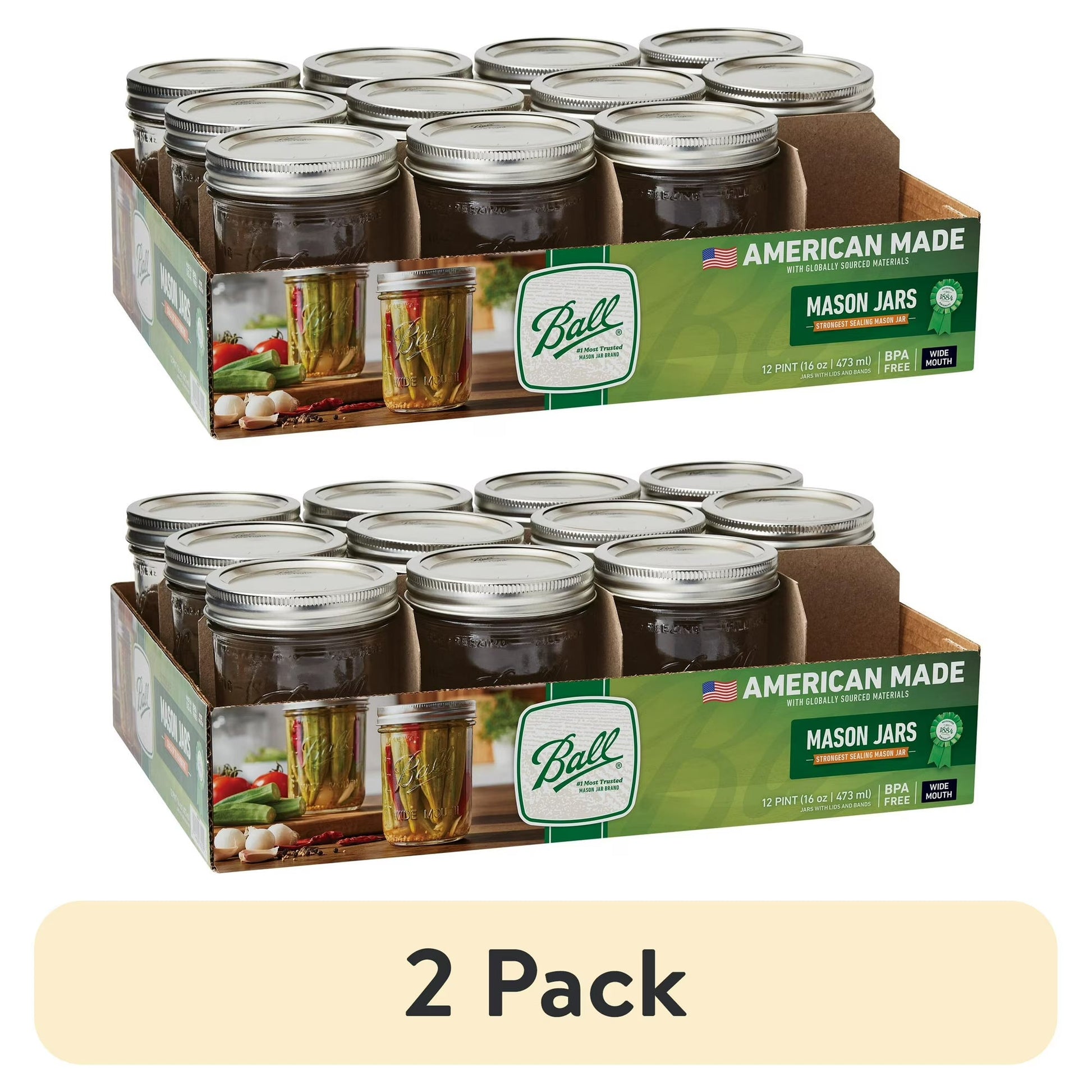 - Ball, Glass Mason Jars with Lids & Bands, Wide Mouth, Clear, 16 oz, 12 Count
