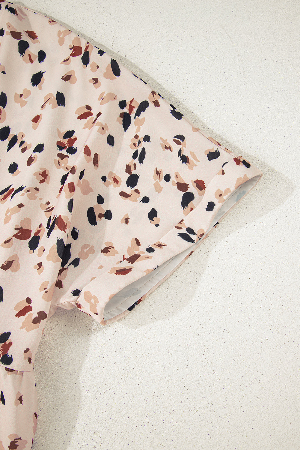Beige Abstract Print Surplice V Neck Cuffed Sleeve Empire Waist Plus Size Dress