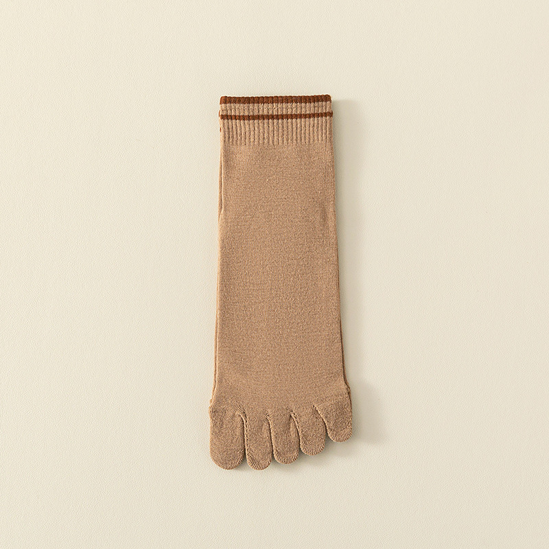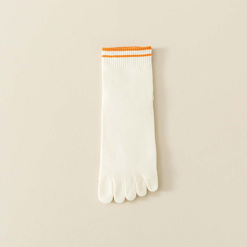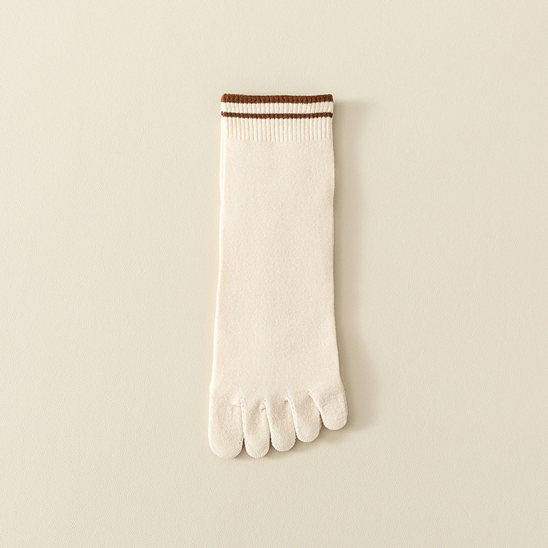 Breathable Sweat Absorbing Five Finger Striped Mid-calf Length Socks