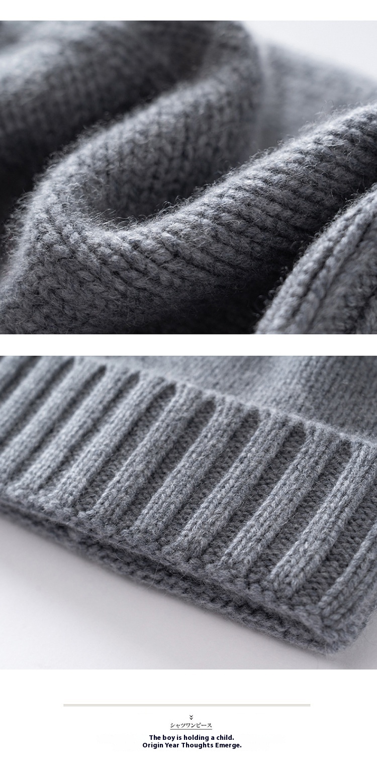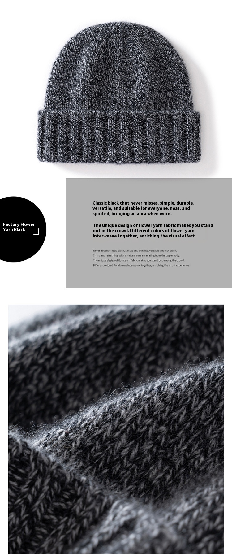 Cashmere Beanie Hat Thick Stripes Men And Women Knitted Flanging Beanie