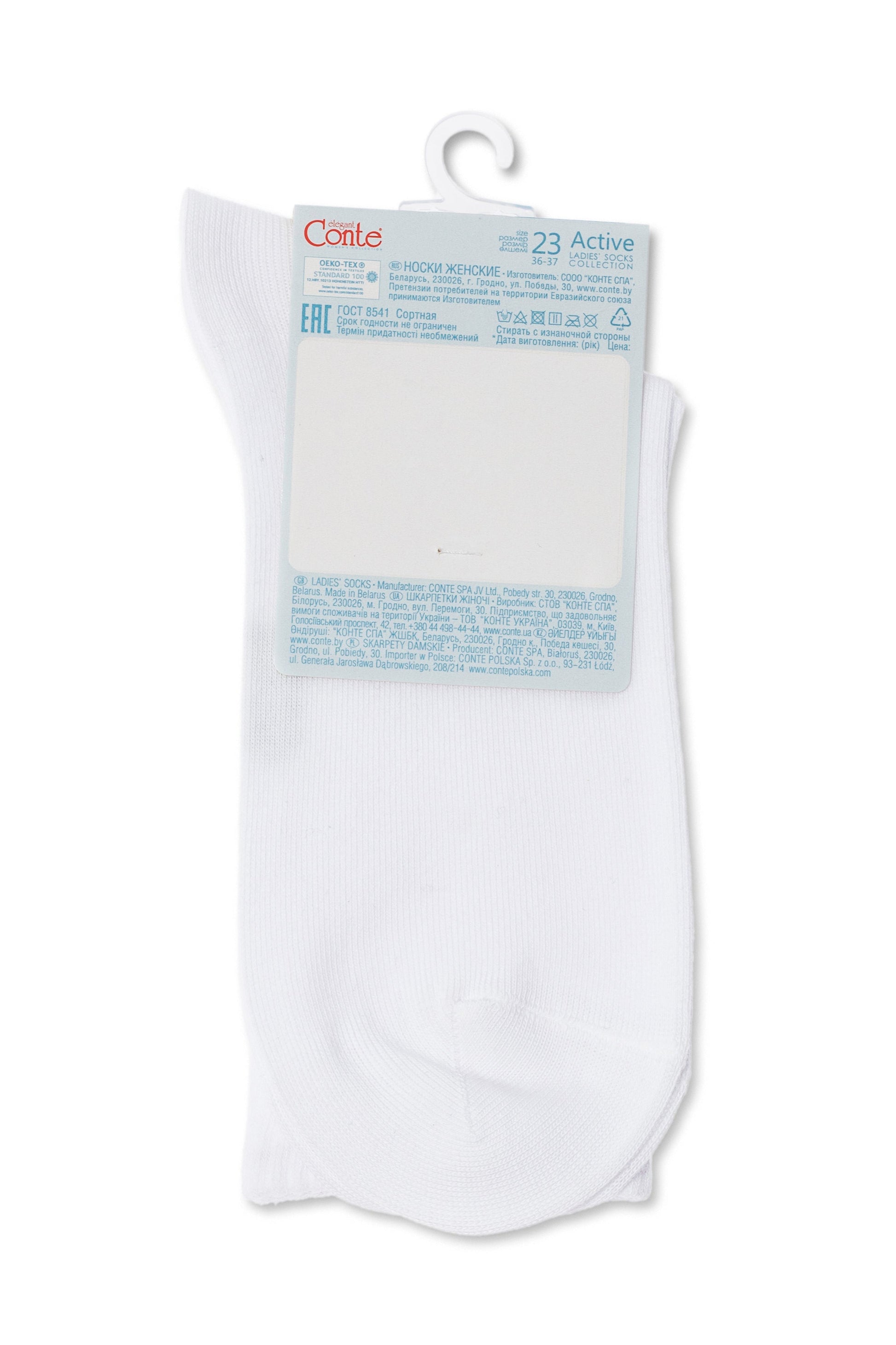 The elongated plain ACTIVE socks made of soft cotton are specially designed for active women. The socks fit comfortably on the foot, do not slip, and provide absolute comfort and ease. They are perfect for everyday wear with both classic and sporty footwear.