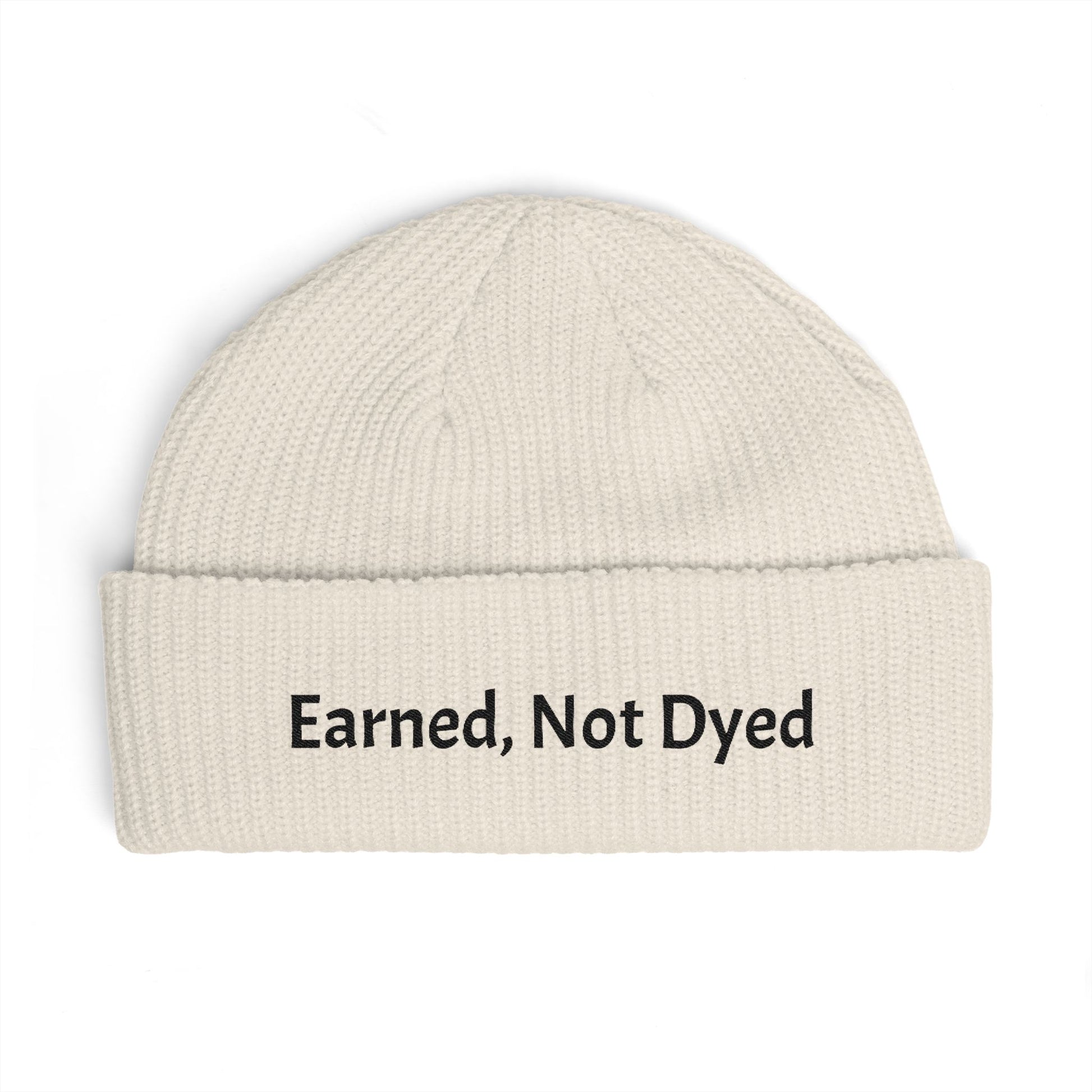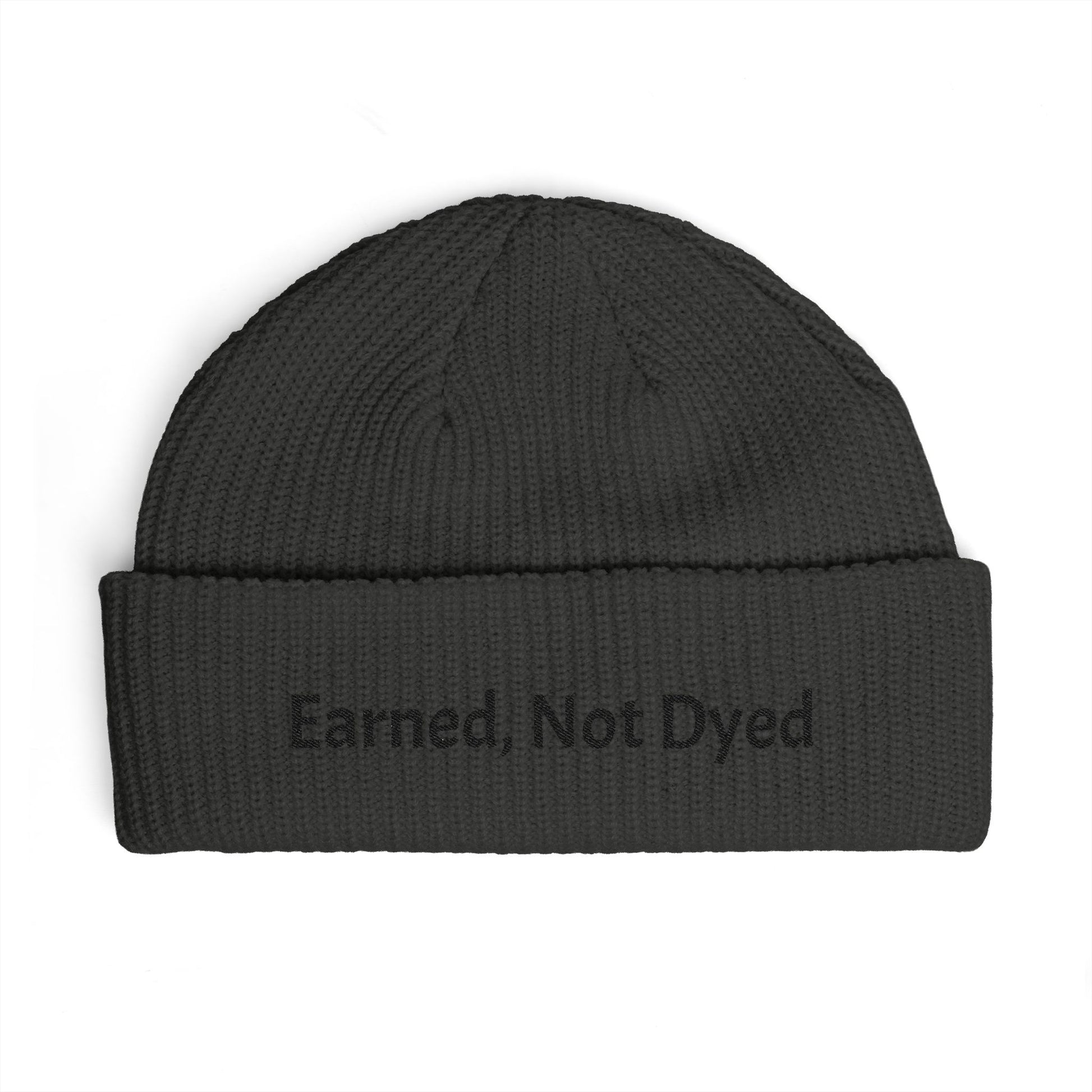 Earned, Not Dyed Cuff Beanie — Embroidered Political Statement Winter Hat
