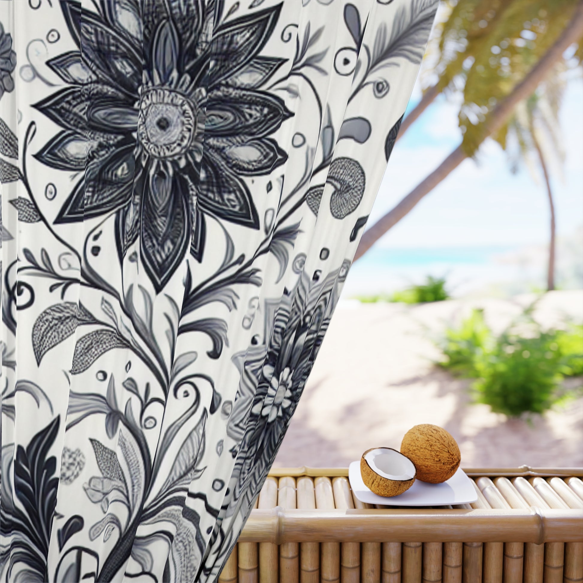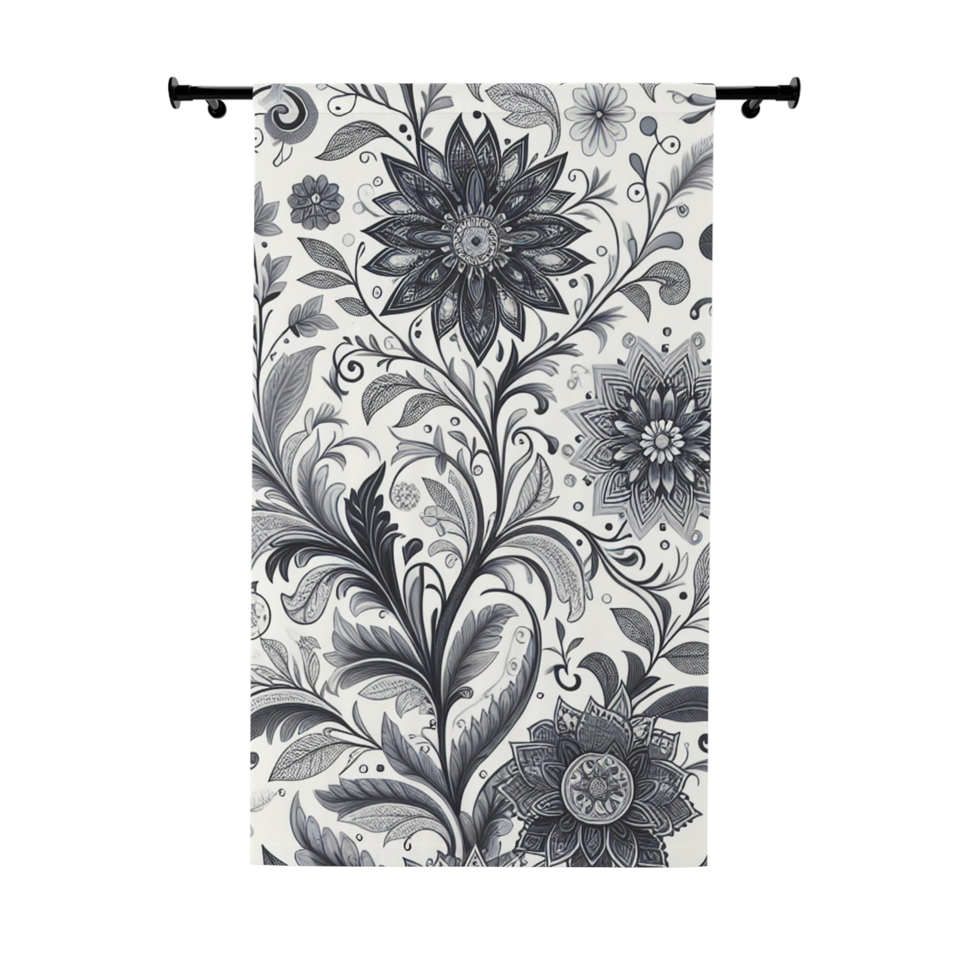 Elegant Floral Window Curtain, Home Decor, Black and White Floral Drapes, Living Room Curtains, Bedroom Window Treatment