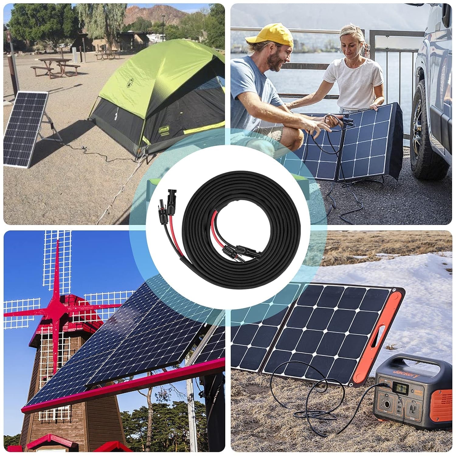 Includes one red and one black 30ft solar extension cable (10AWG, 6mm²) made with tinned copper wire for excellent conductivity and low power loss.🌦️ Weatherproof & UV-Resistant