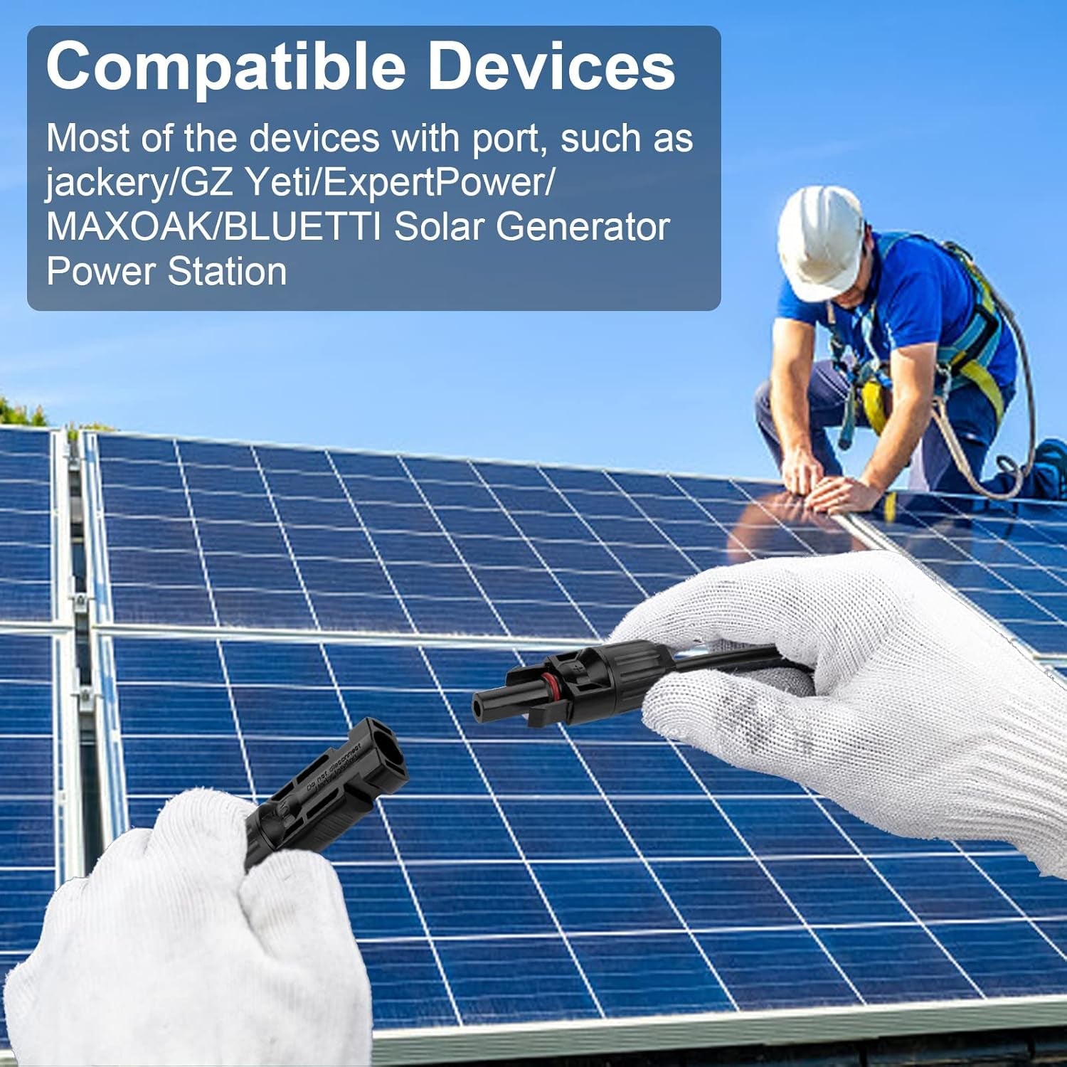 No tools required. Compatible with most solar panel brands, charge controllers, and solar generators. Use for home, RV, boat, or portable solar setups.