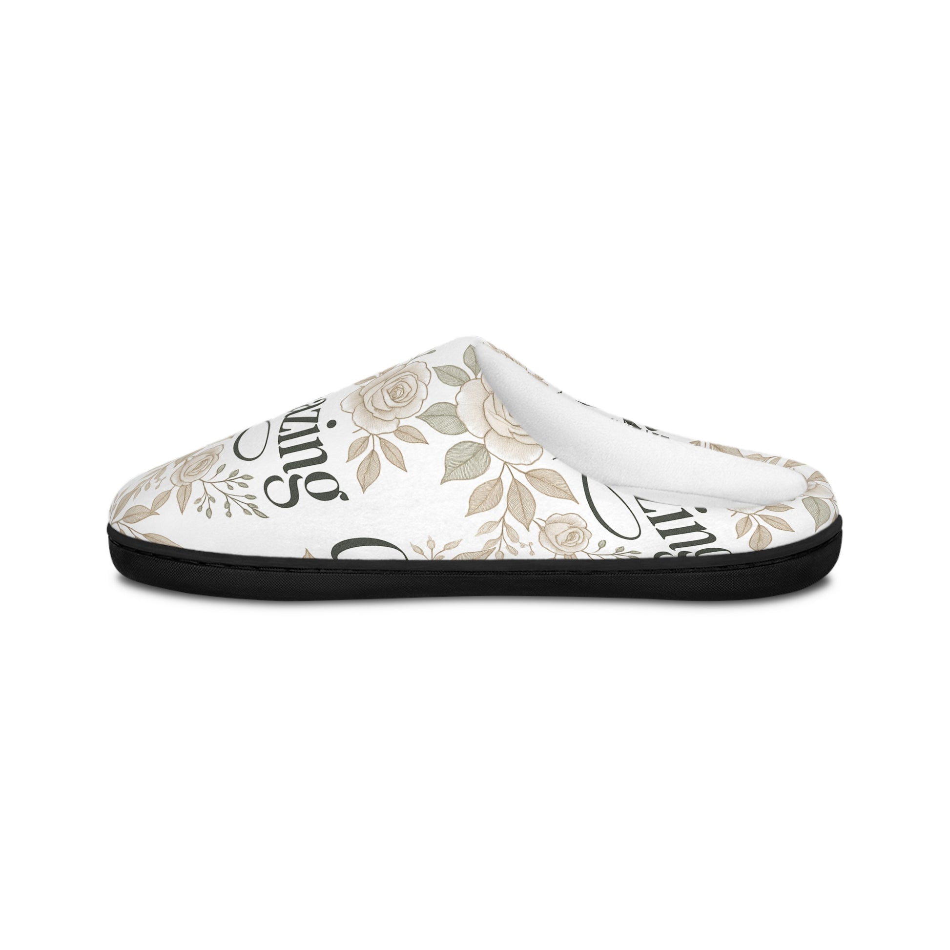 Slide into quiet comfort. These lined indoor slippers wrap your feet in soft flannel fleece and a gentle floral print that reads like a whispered name across the top. The removable insole makes airing and washing simple, so they stay fresh through everyday wear. A flexible, textured rubber outsole keeps you steady on hardwood or tile without feeling bulky. Lightweight and breathable, they settle into the rhythm of slow mornings, cozy evenings, and those in-between moments when you just need to feel at home.