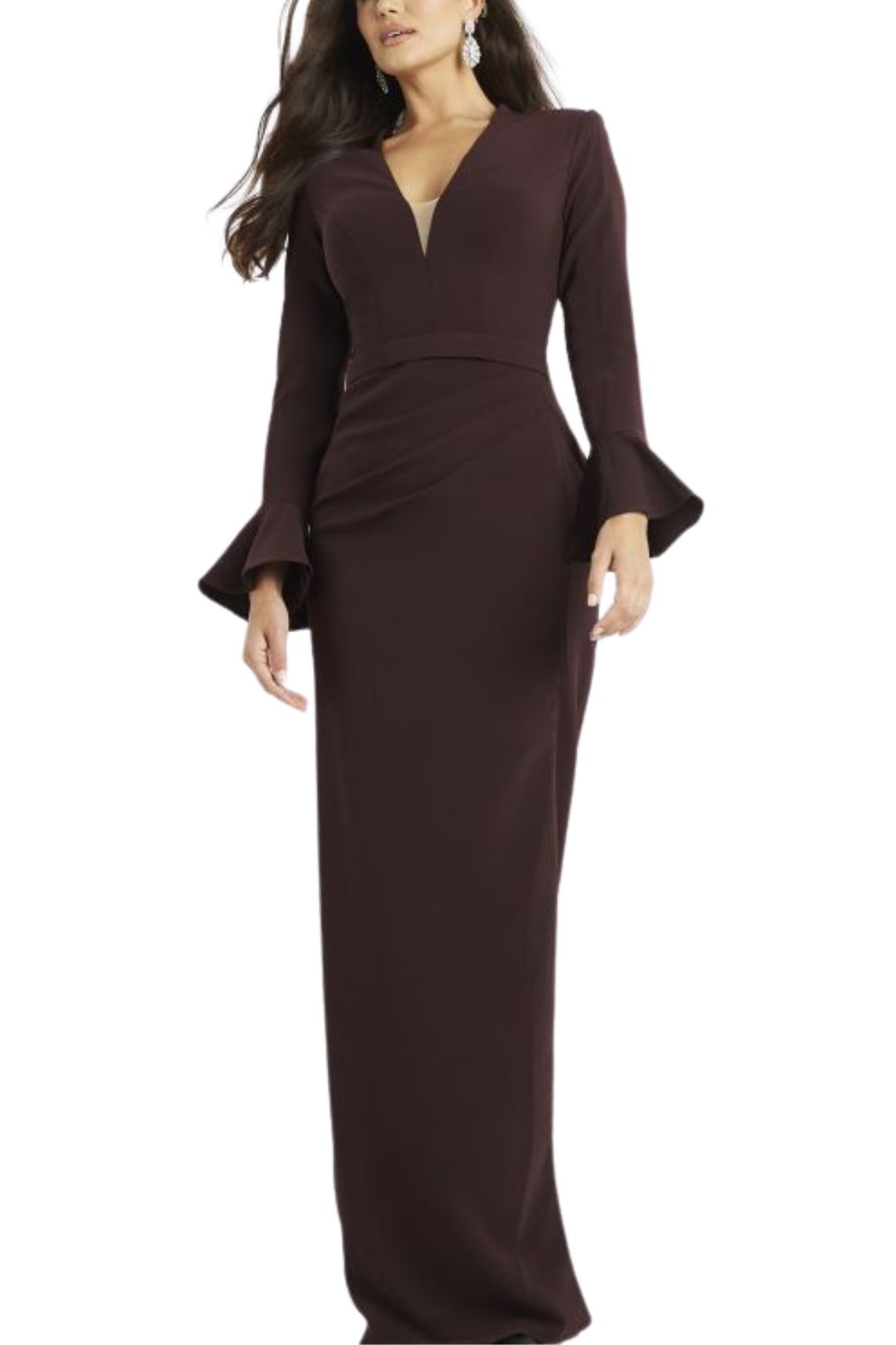 Why choose the Jovani Plum Crepe Side Slit Column Silhouette Gown?
