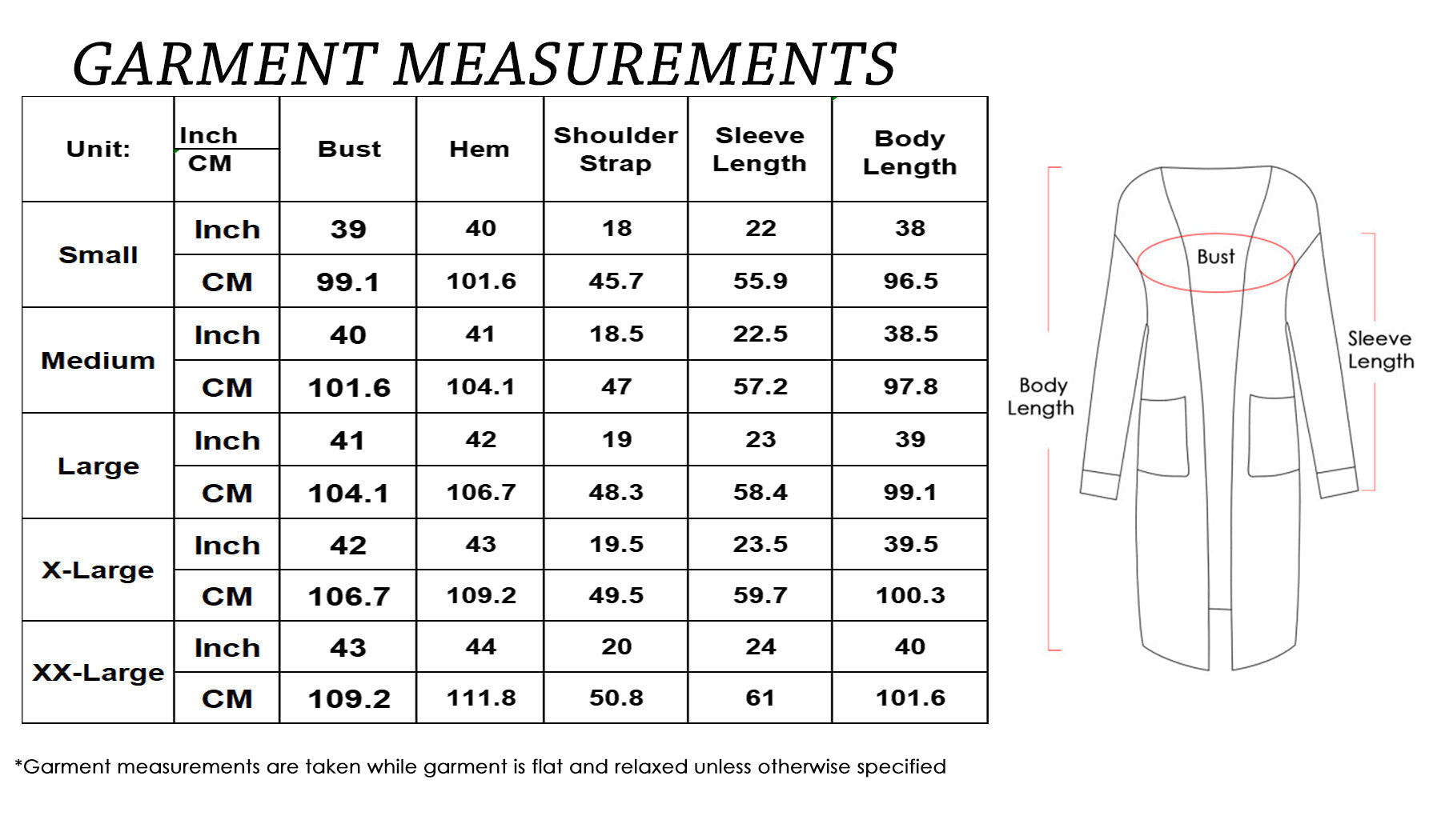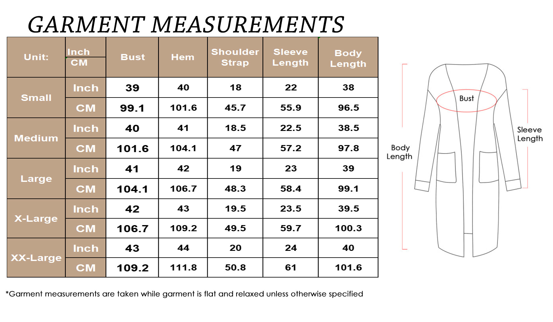 MEASUREMENTS: Cardigan Length is 41-42in