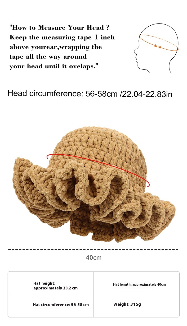 Knitted Pleated Ruffled Fashion Woolen Hat