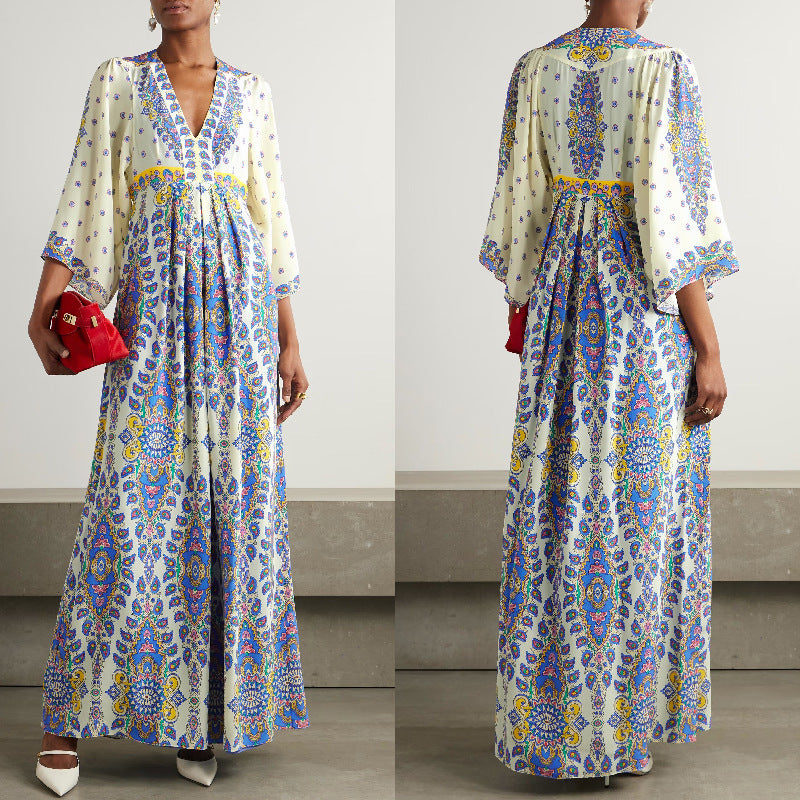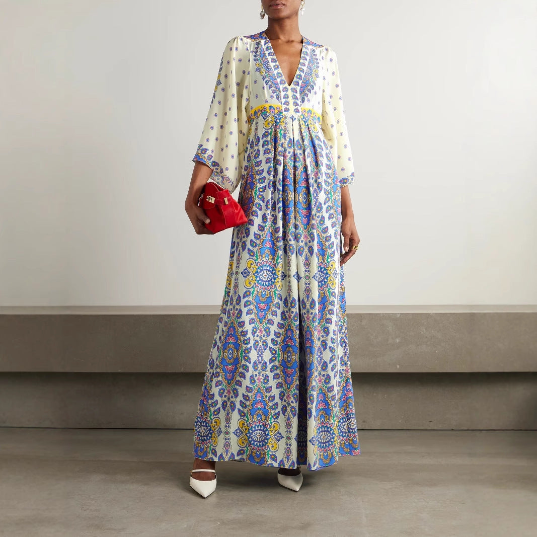 Loose Plus Size Positioning Digital Printed V-neck Maxi Dress