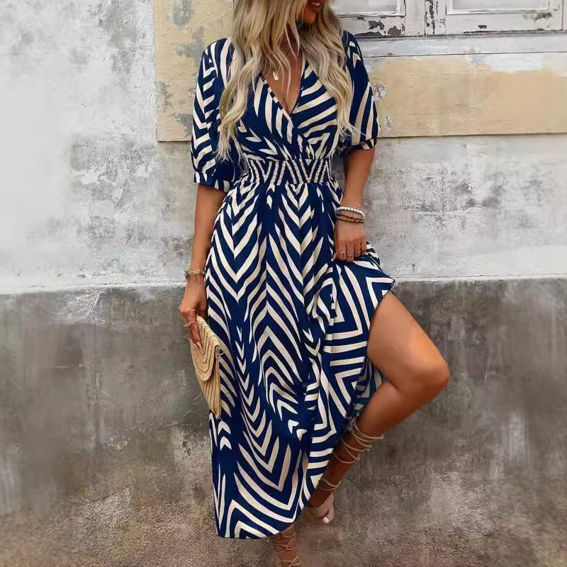 Loose Women's Wear Elegant Style Random Printing Tie-dye Large Swing Dress