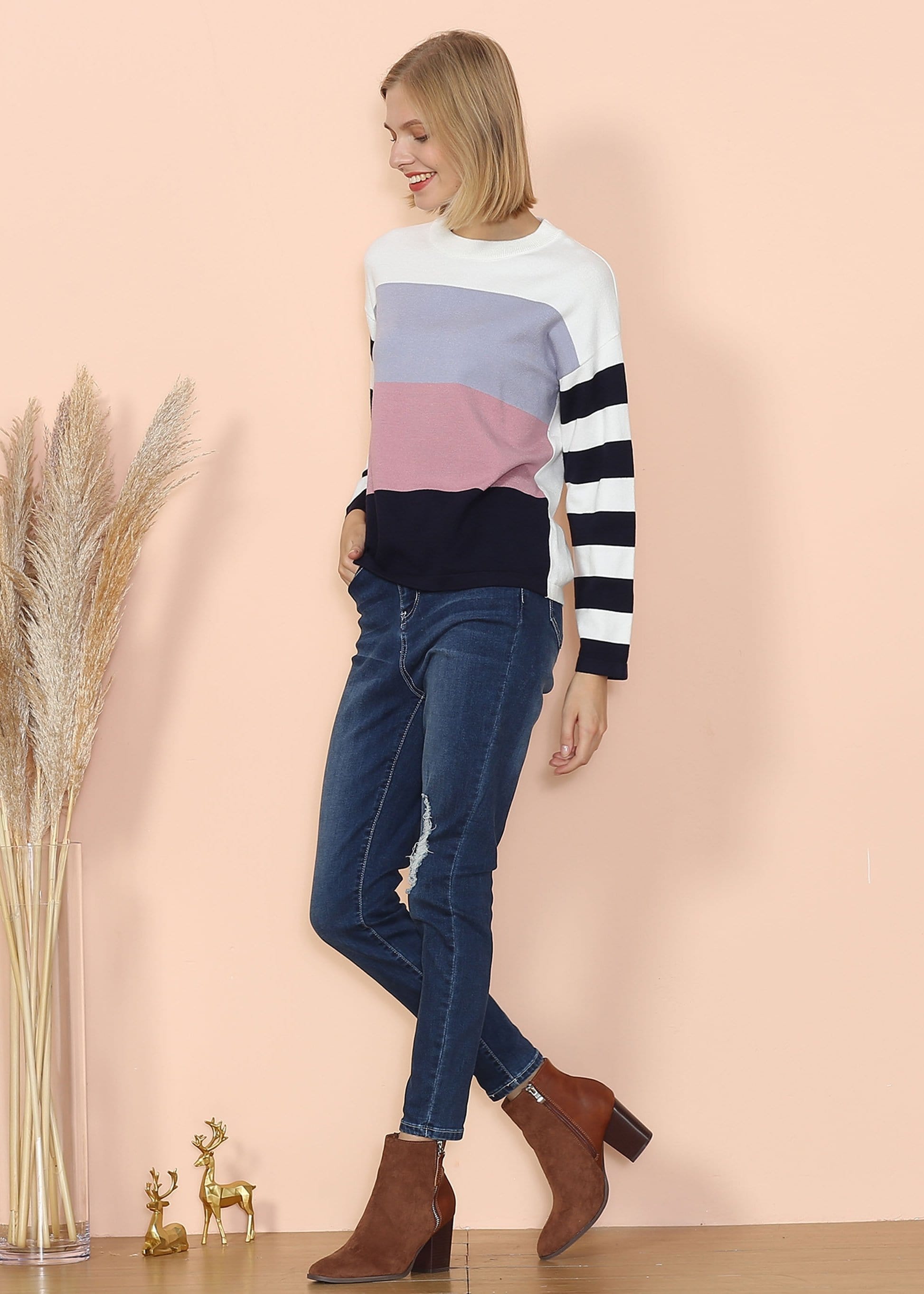 Mixed Striped Long Sleeve Sweater