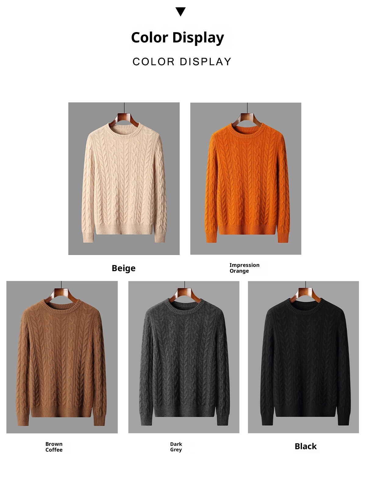 Color: beige, orange, black, dark gray, brown coffee color