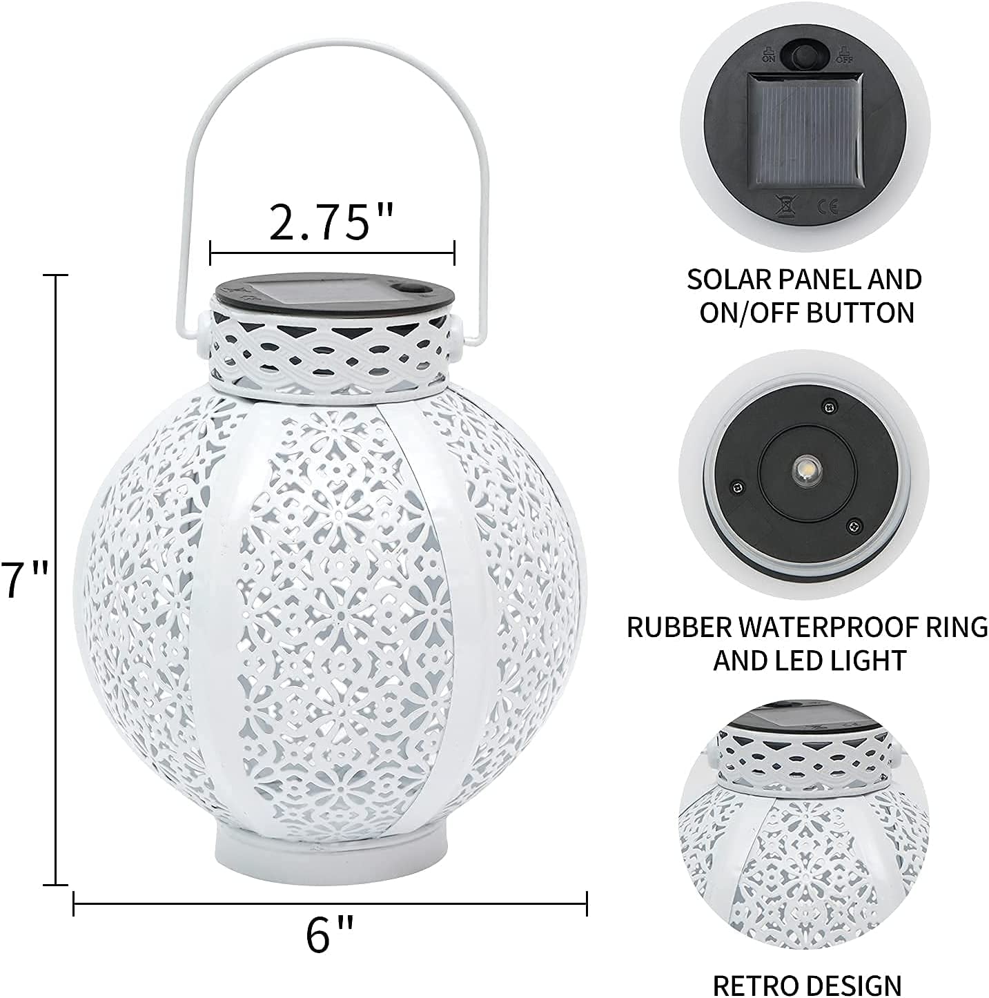Illuminate your outdoor spaces with charming, eco-friendly lighting using these 2 Pack Outdoor Solar Lanterns. Crafted from retro-style hollow metal with exquisite cut-out patterns, these lanterns create beautiful light projections on the ground or walls, adding a romantic and cozy ambiance to your patio, yard, garden, or porch.