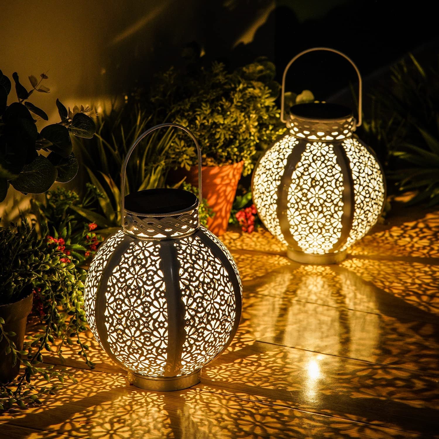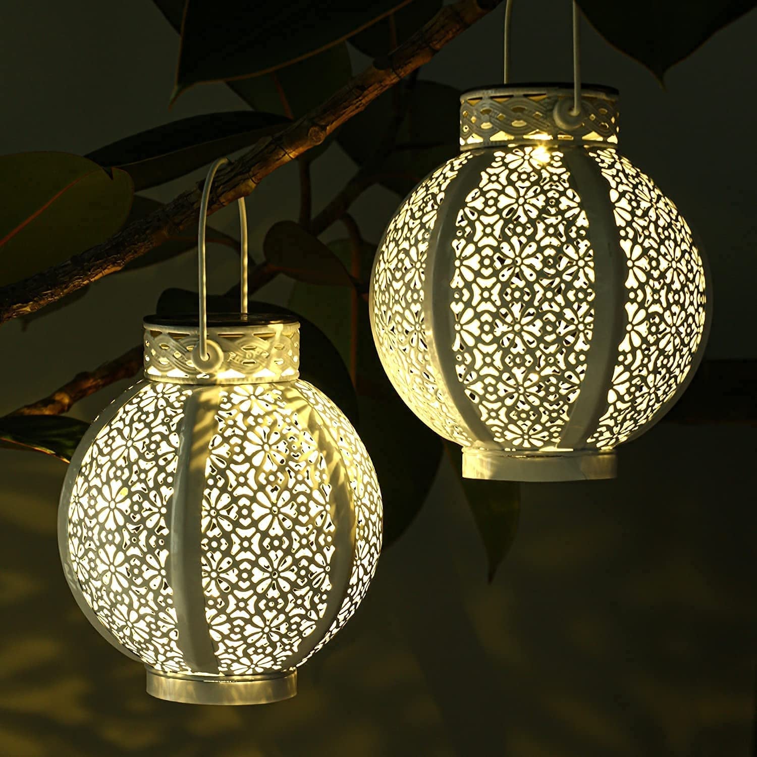 Outdoor Solar Lanterns – 2 Pack Retro Hollow Metal Hanging Lights for Garden & Patio