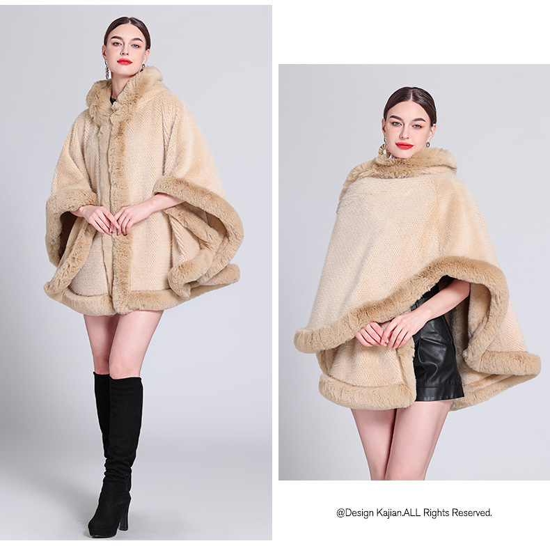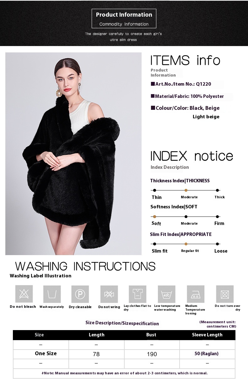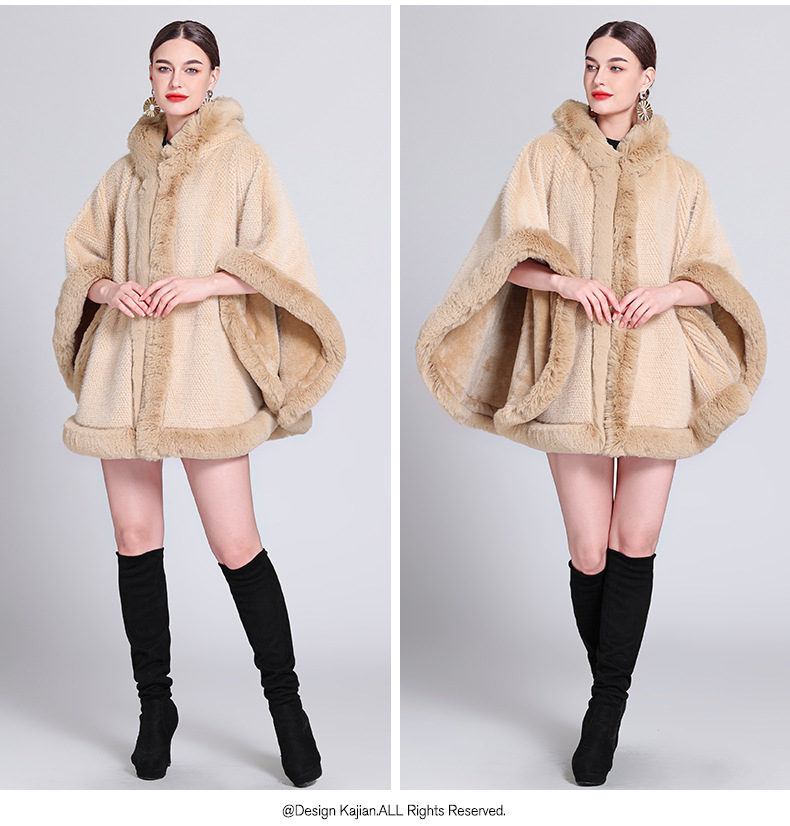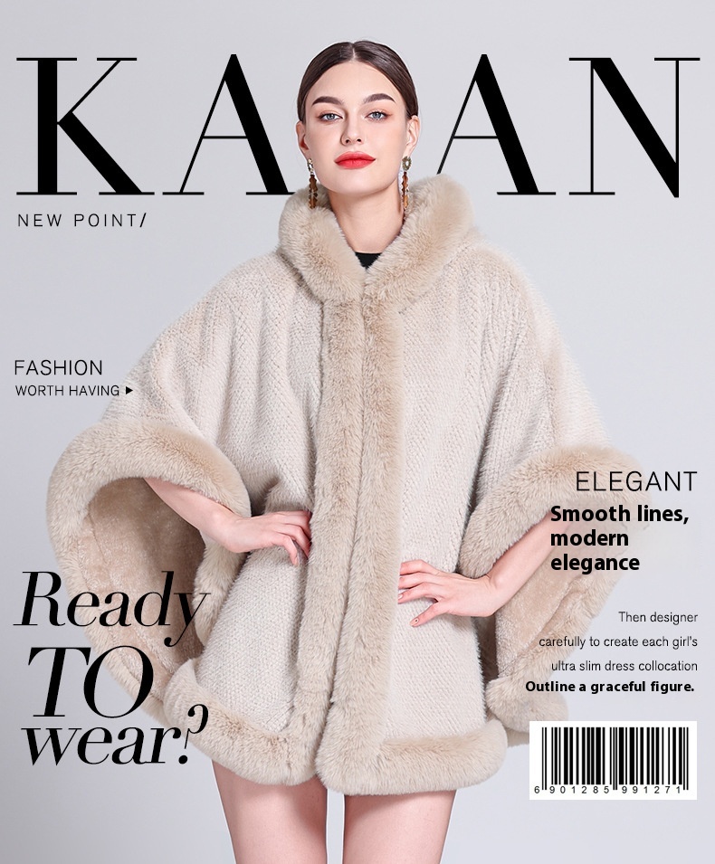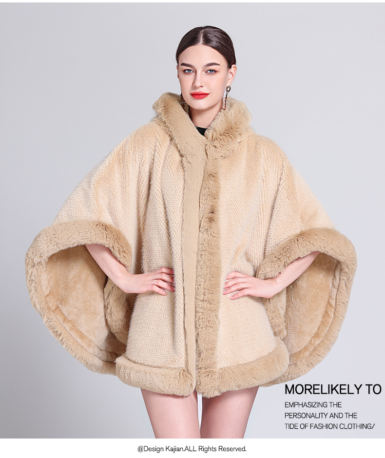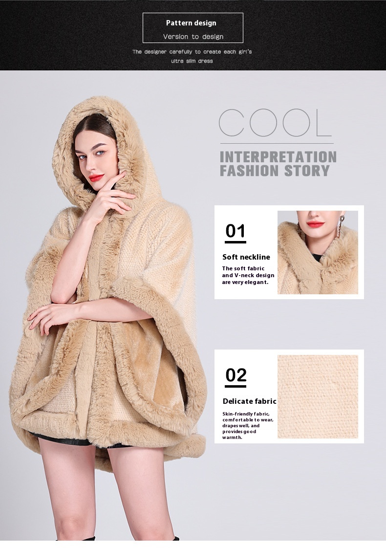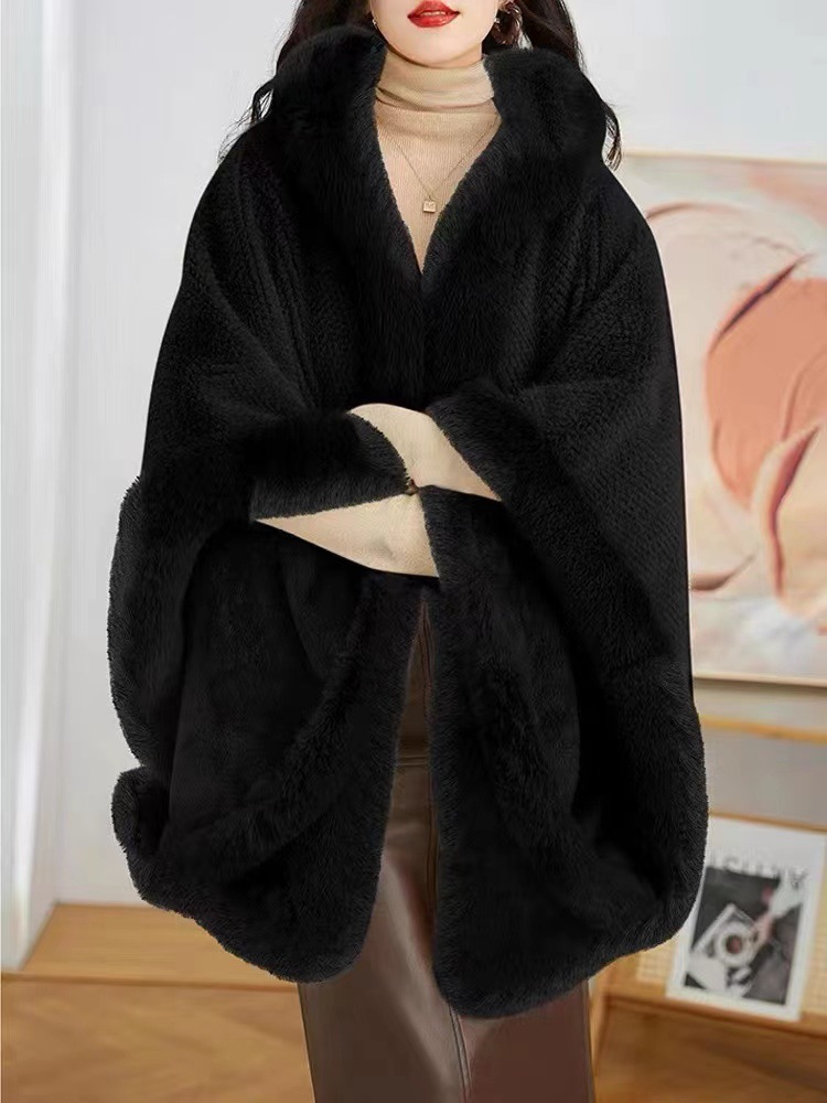 Shawl Outer Match Cloak Fleece-lined Thickened Imitation Fur Collar Cape And Shawl Coat
