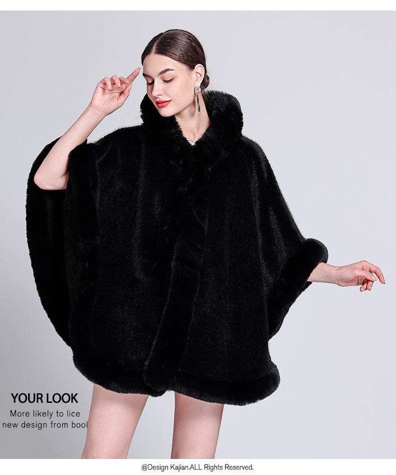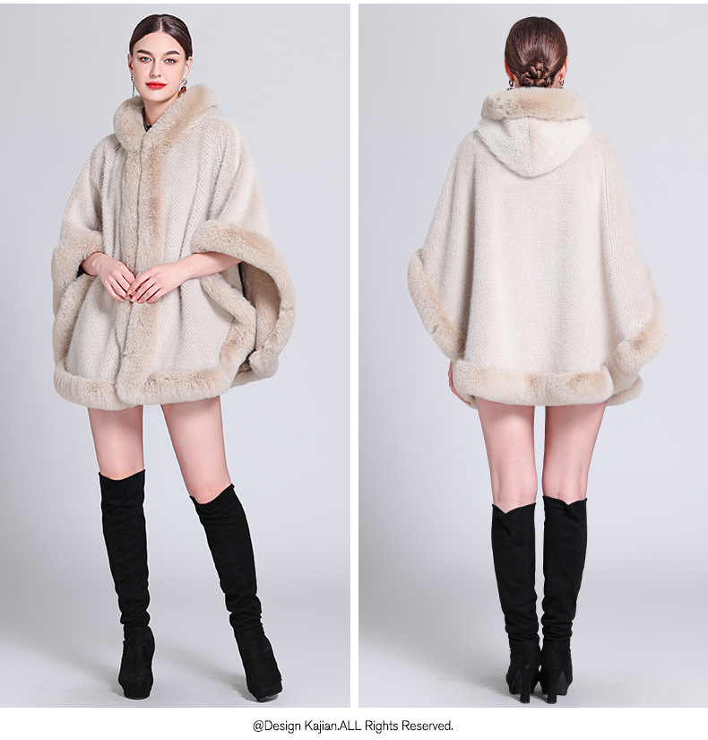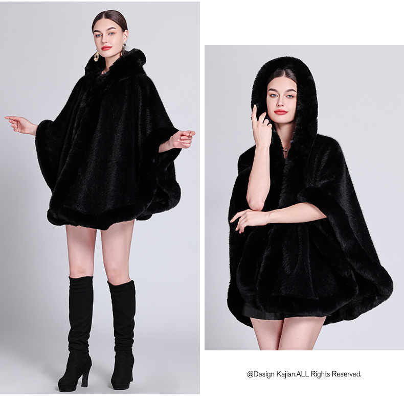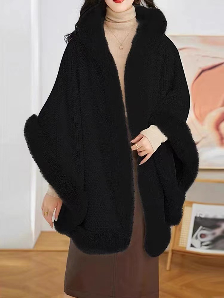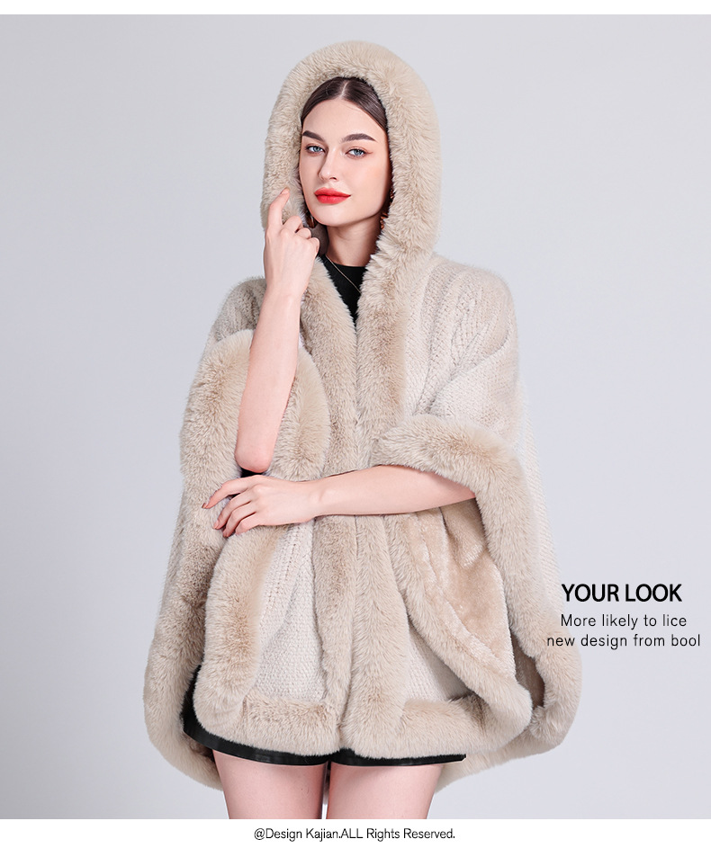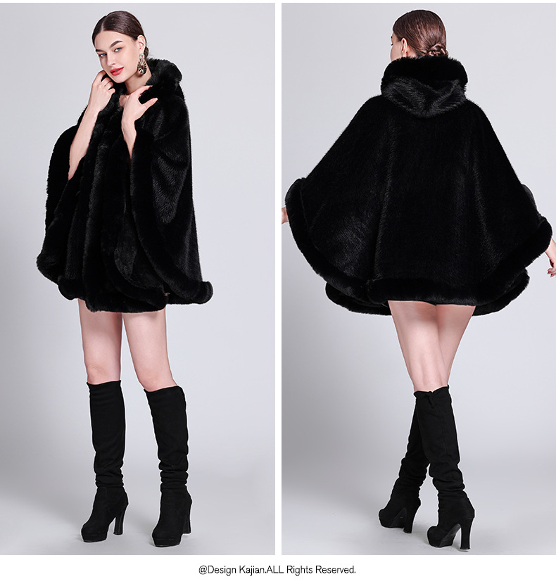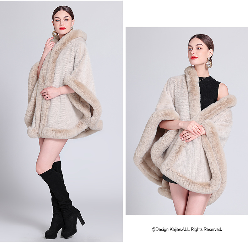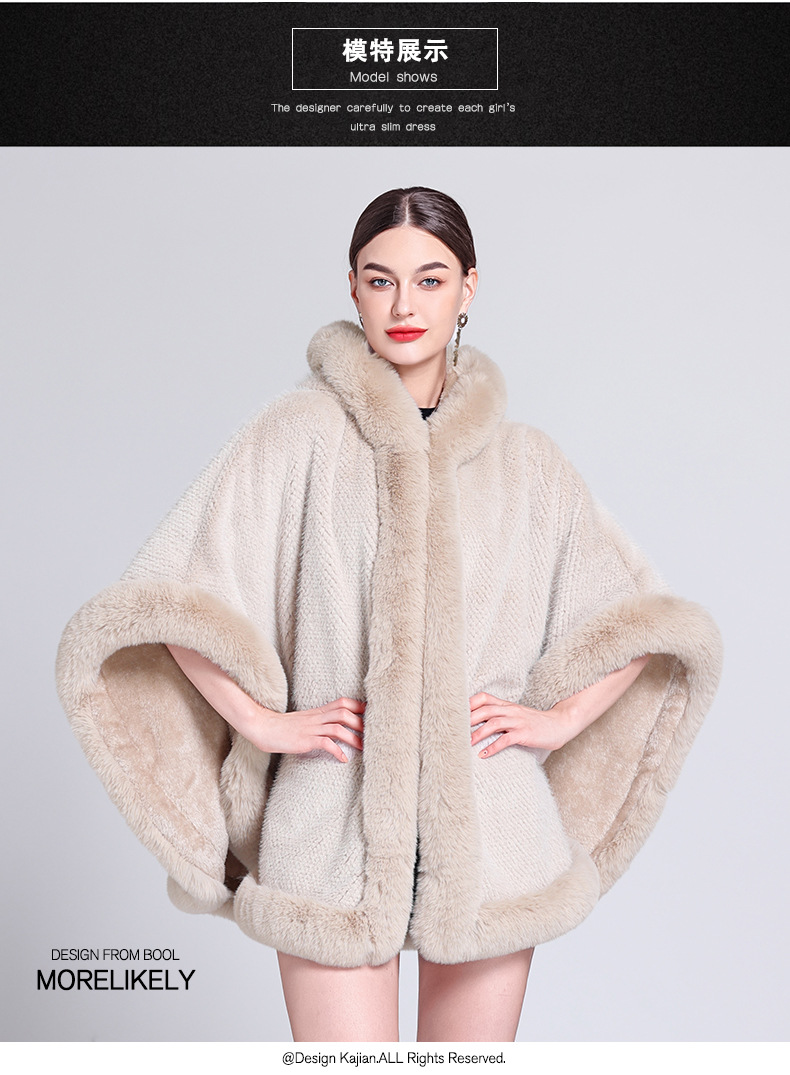 Shawl Outer Match Cloak Fleece-lined Thickened Imitation Fur Collar Cape And Shawl Coat
