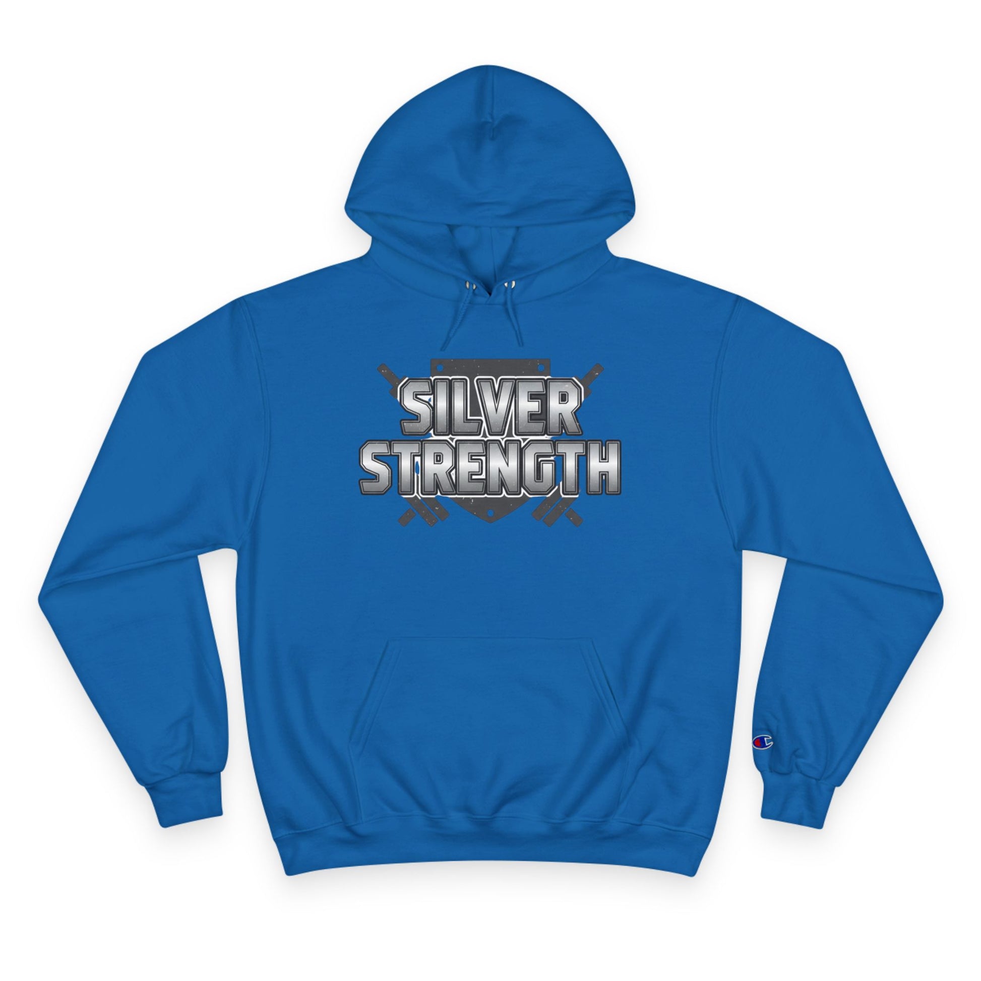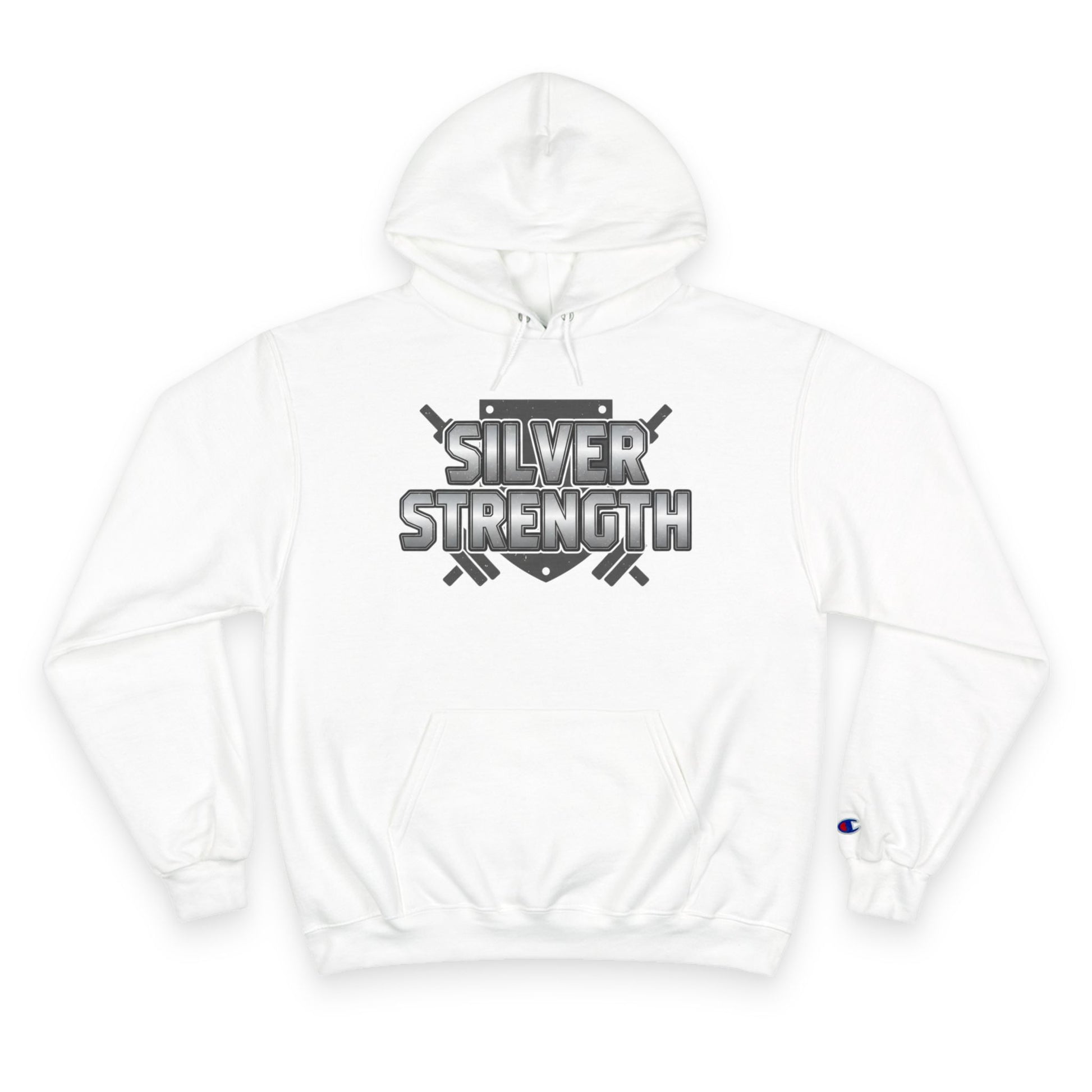 Silver Strength Hoodie — Champion Logo Athletic Pullover