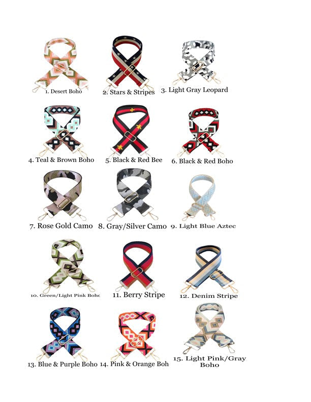 First choose the vegan leather color for your crossbody. Then choose your strap style.
