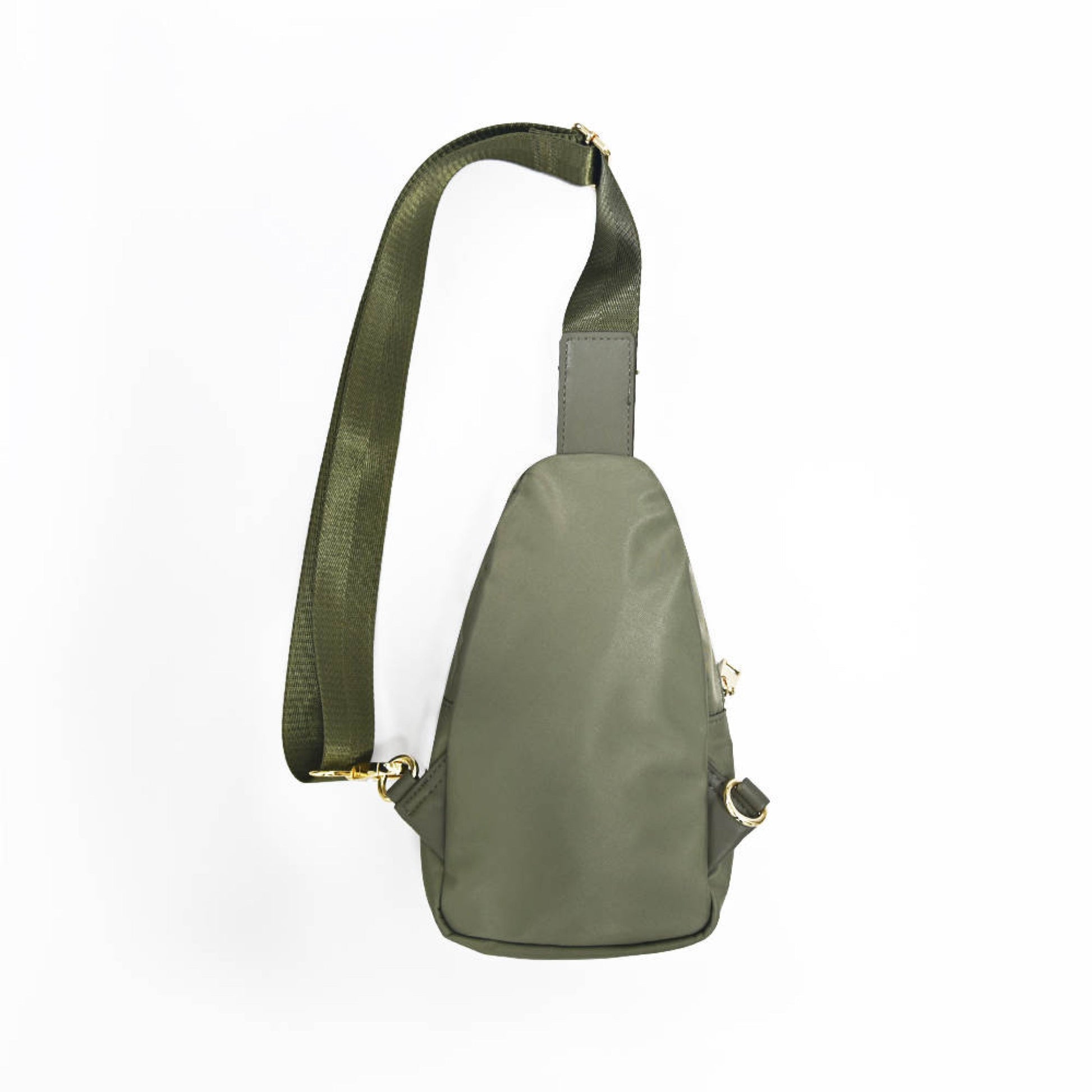 This sling bag is super sleek with a double zipper and beautiful gold accents. Can be worn dressed up or down and can fit a surprising amount of items given its compact design.