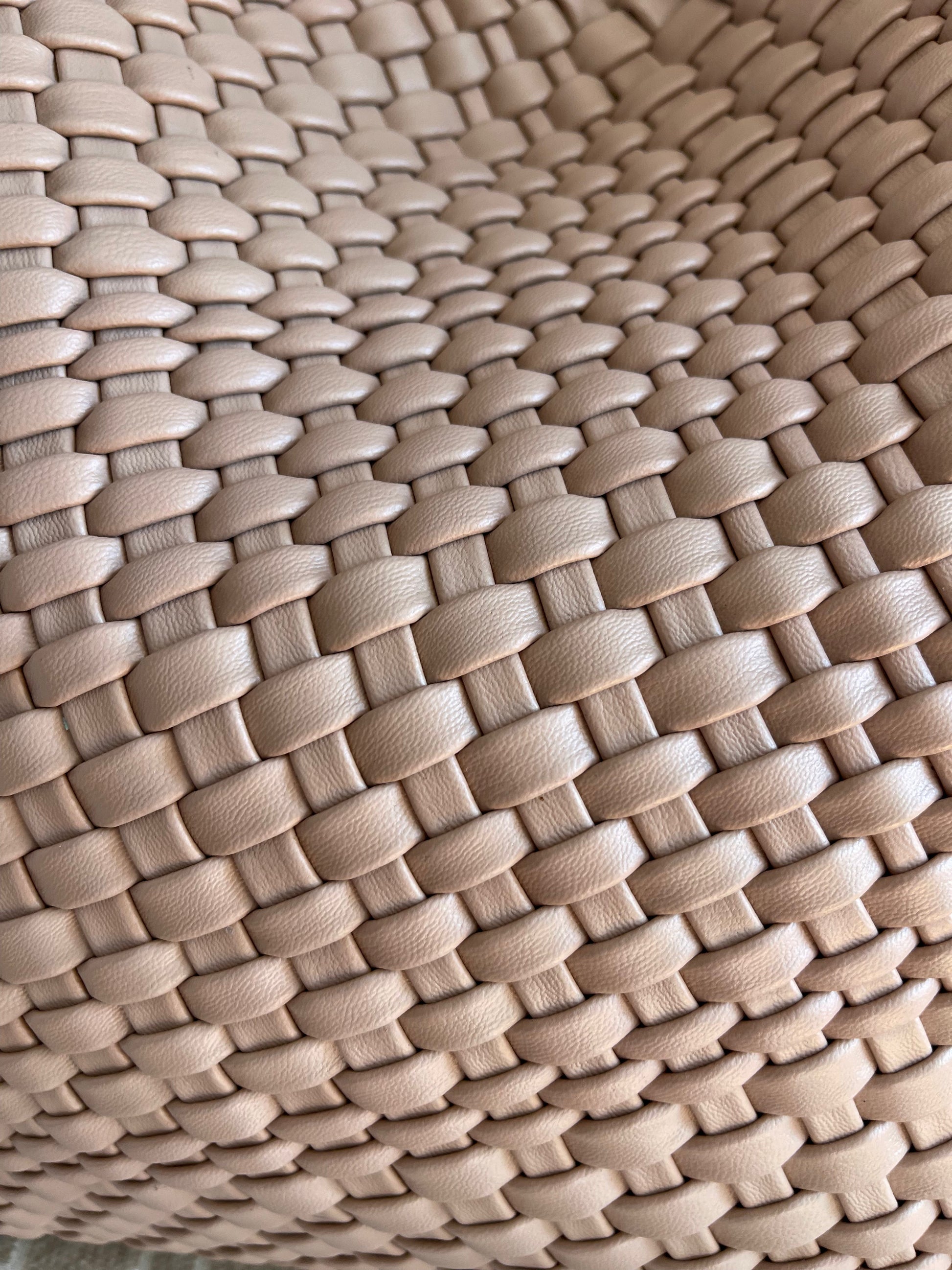 This stunning handbag is truly unique, crafted from hand woven vegan leather material that is both durable and stylish. The leather is soft to the touch, yet strong enough to withstand the wear and tear of everyday use. The intricate weave pattern adds texture and depth to the bag, making it a true statement piece.