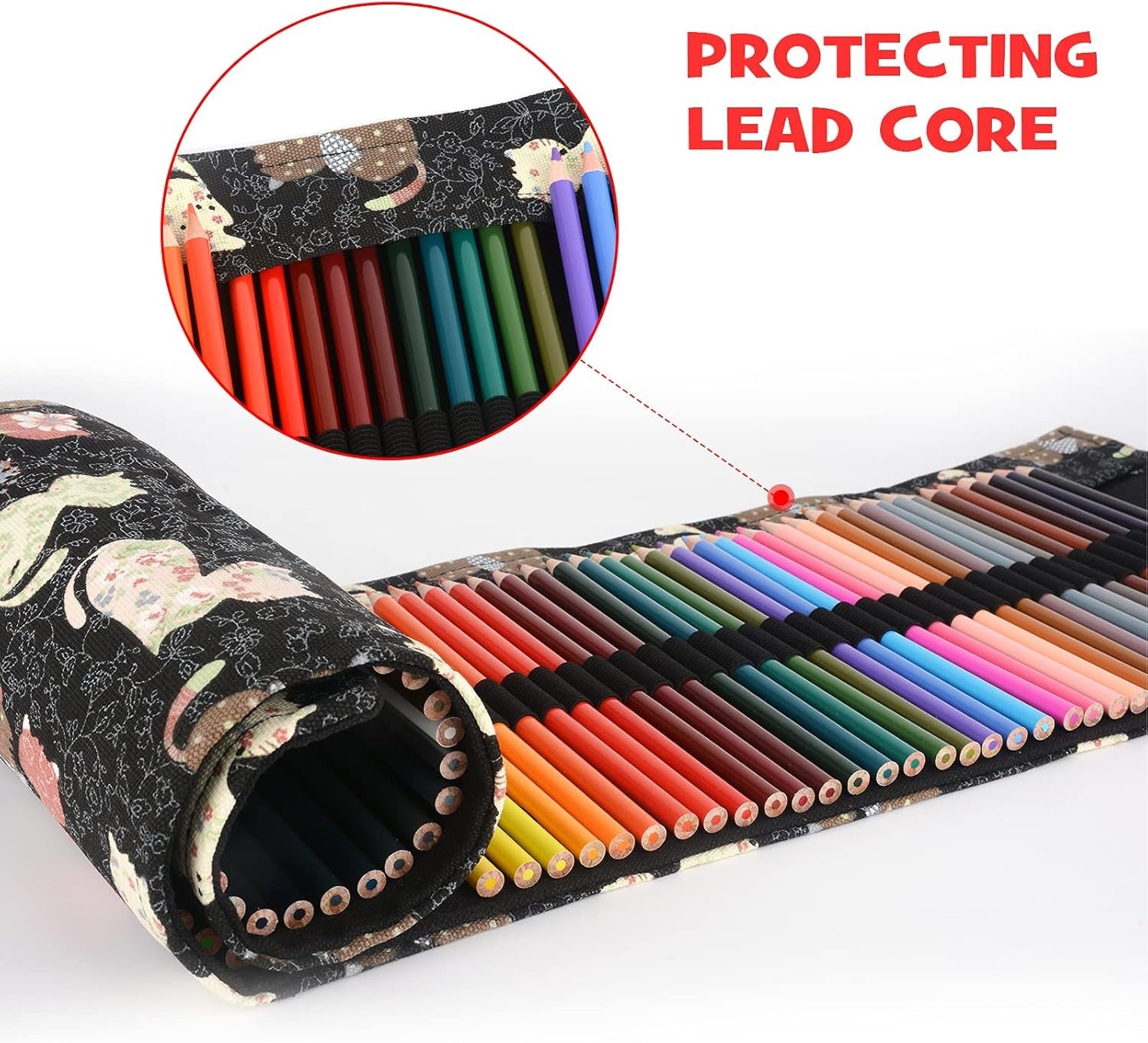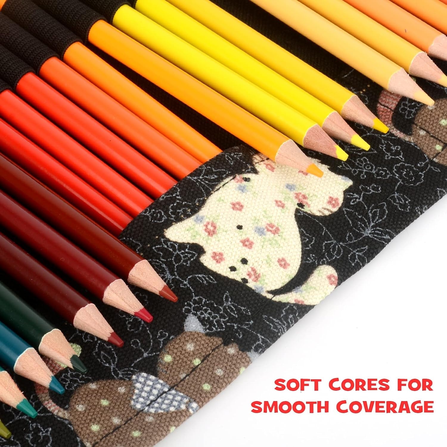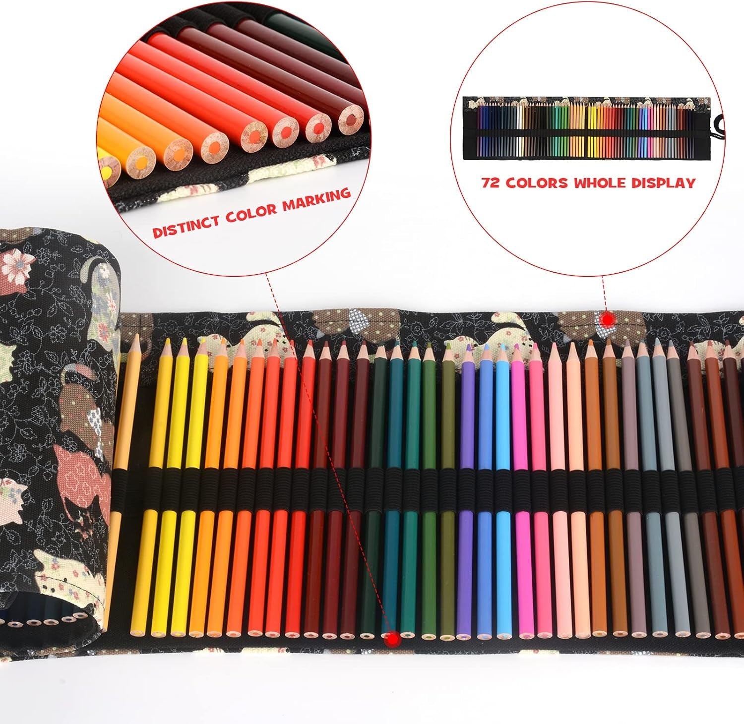 ThEast 72-Color Pencil Set with Handmade Canvas Pencil Pouch – Adorable Cat Design, Pre-Sharpened, Eco-Friendly Colored Pencils with Sharpener, Eraser & Bonus Accessories