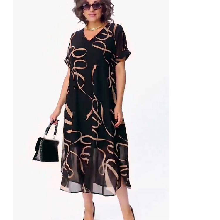 Western Style Plus Size Women's That Makes You Look Younger Printed Short Sleeve Dress
