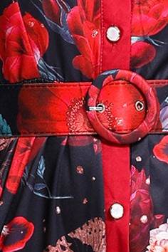 Details-floral multi print, little v-neck look, sleeveless front button, A-line style with belt, run small
