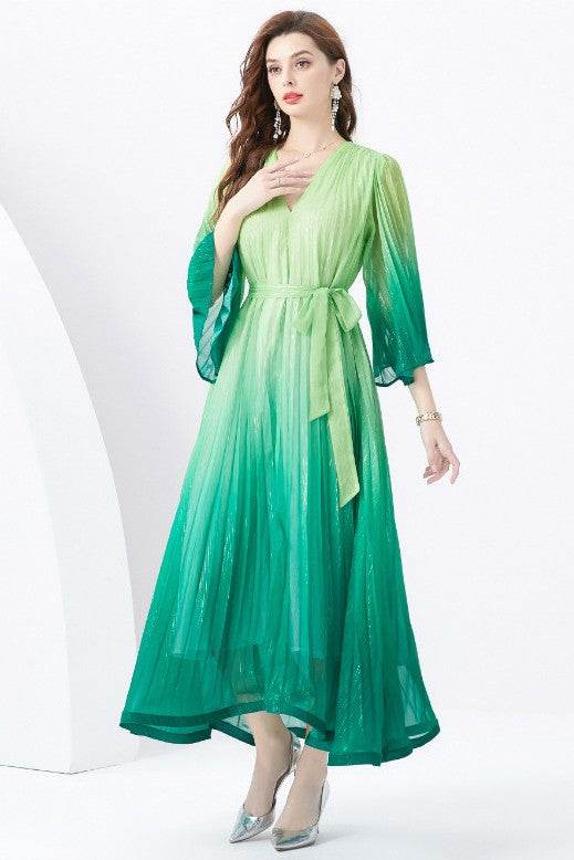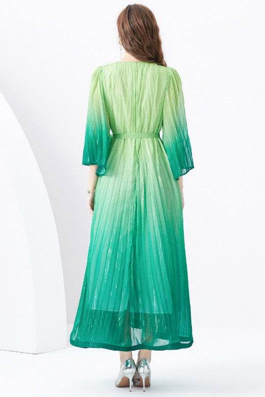 Sexy fashion chiffon dress, v-neckline,3/4 short sleeves, gradient color, long maxi dress with lining