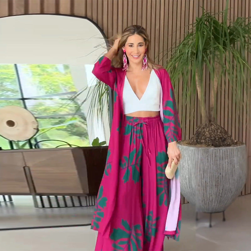 Women's Fashion Casual Printing Long Shirt Trousers Suit