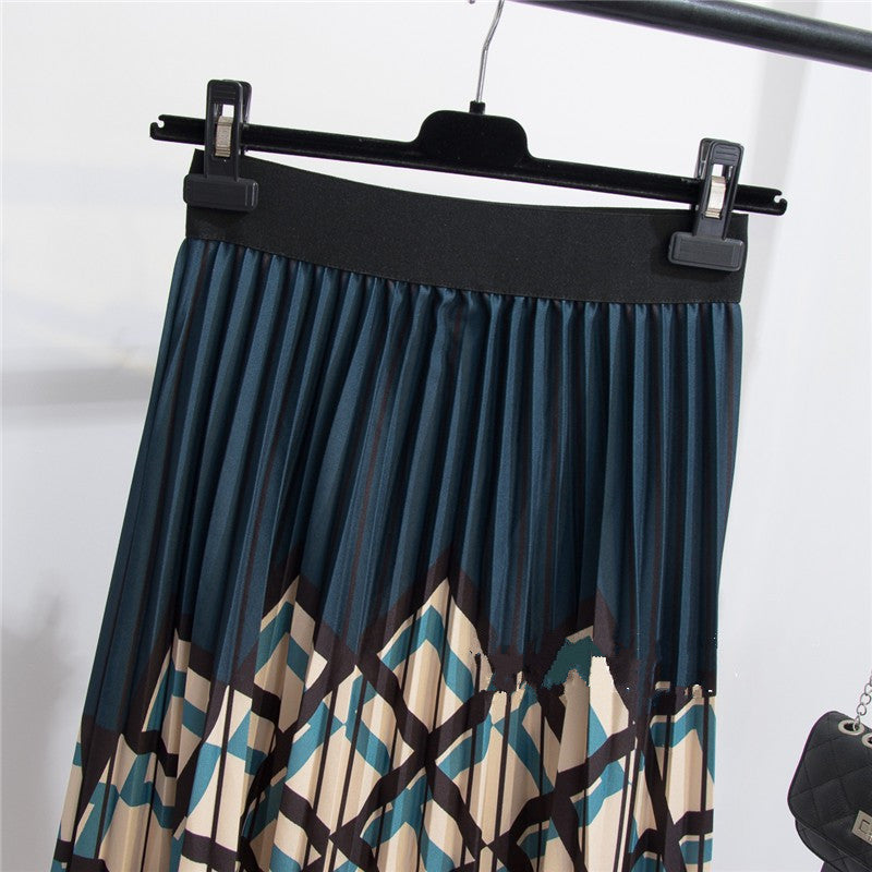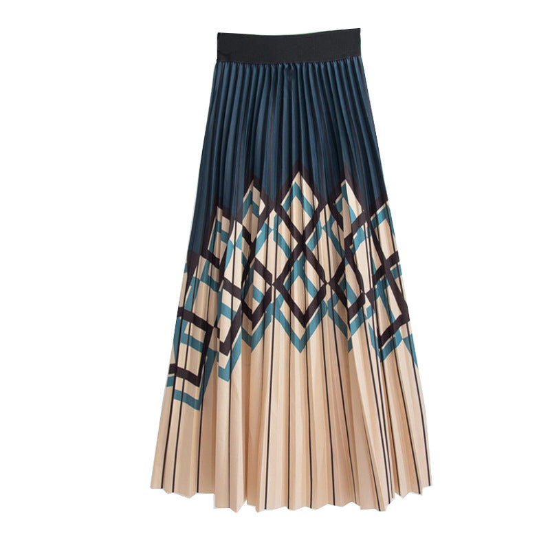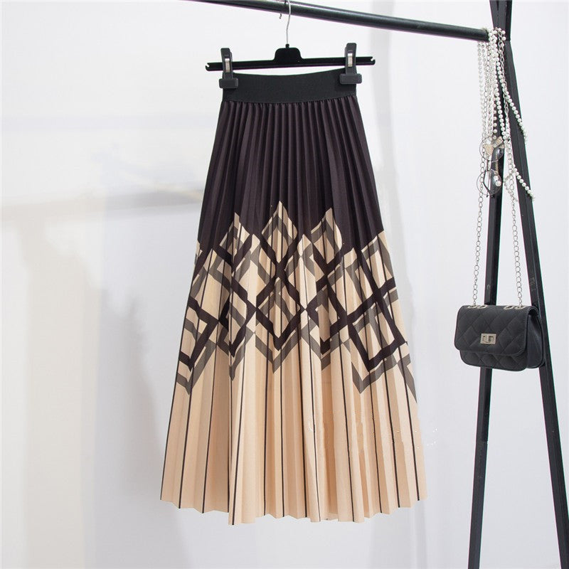 Women's Graceful Geometric Striped Pleated Skirt
