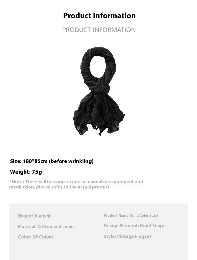 Women's Natural Wrinkle Pure Linen Scarf Shawl