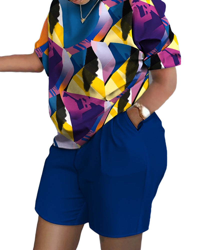 Women's Printed Short-sleeved Two-piece Commuter Suit