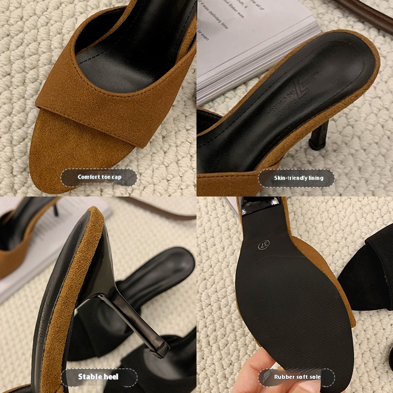 Women's Soft Leather High Heel Slippers