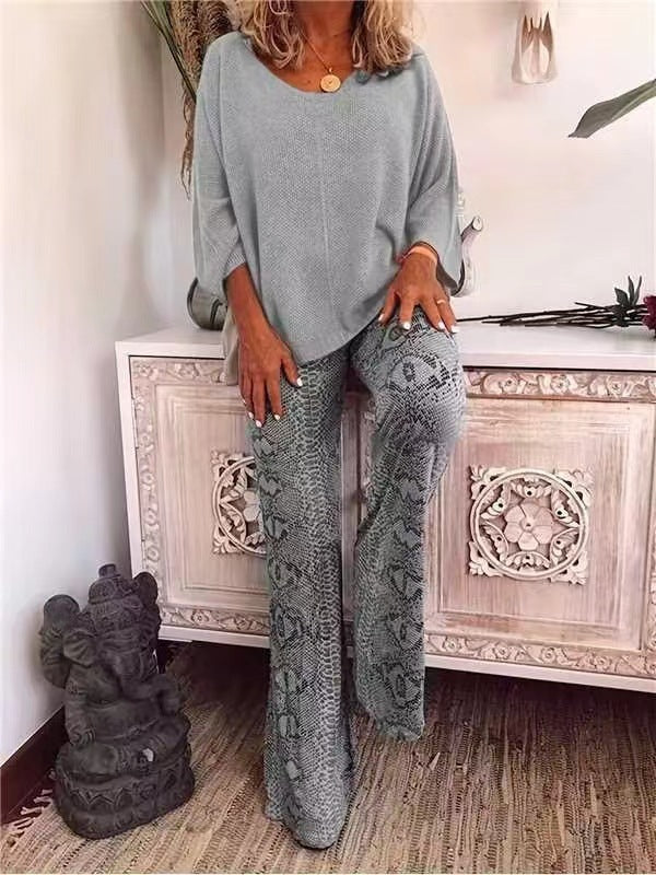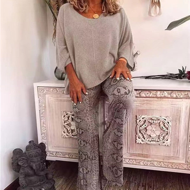 Women's Solid Color Top Printed Trousers Suit